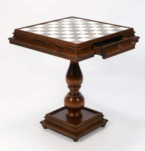 Esta mesa se beneficia de un acabado artesanal de alta calidad, el resultado final es de gran sobriedad y acompaña perfectamente al juego de ajedrez. La mesa incorpora dos cajones para guardar las piezas de ajedrez.