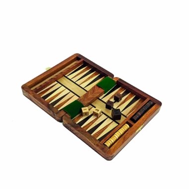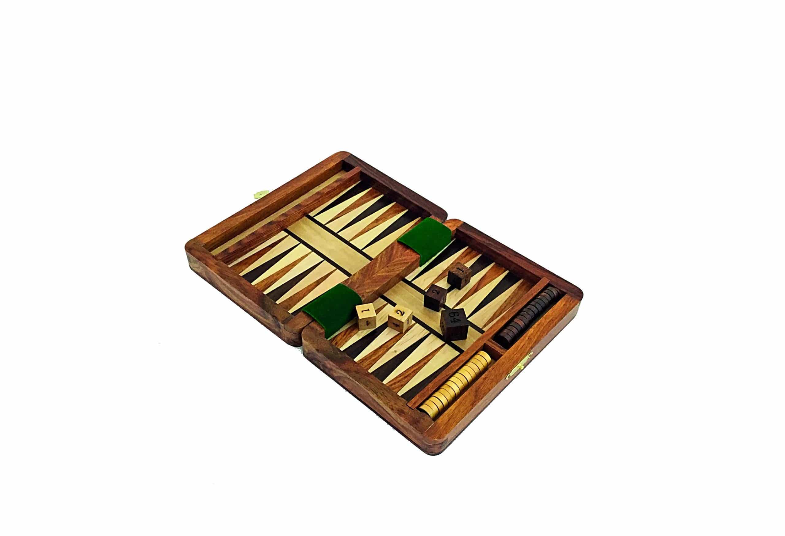 Un bonito pequeño conjunto de Backgammon de viaje realizado completamente a mano por artesanos italianos especializados en el trabajo de la madera con los que hemos trabajado durante años.