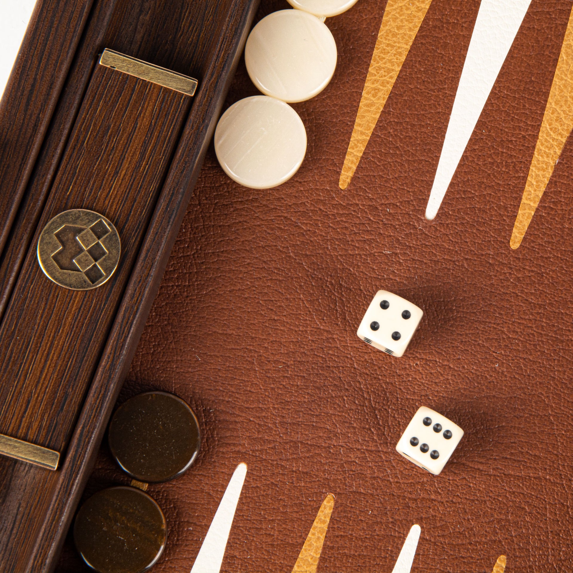 Con sus dimensiones compactas de 30 x 20 cm, este juego es fácil de llevar a cualquier parte, ya sea para vacaciones o noches entre amigos. El interior del juego ofrece una superficie suave y duradera, ideal para partidas fluidas y agradables. Incluye 30 fichas de nácar, de las cuales 15 son negras y 15 blancas, así como 4 dados, 1 dado vacío y 1 par de copas de dados de madera, ofreciendo así todo lo necesario para partidas de calidad.