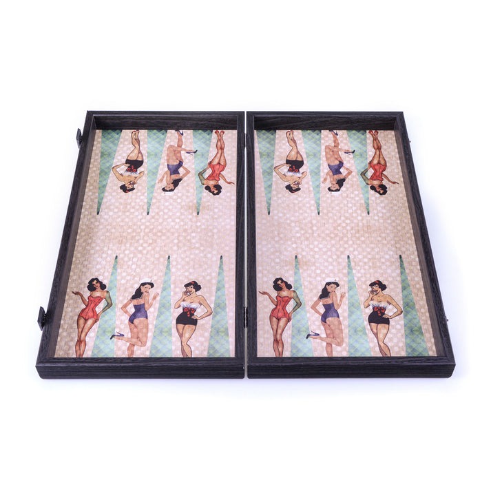 Backgammon Pin-Up Girls – Conjunto de Juego Vintage en Madera Laminada