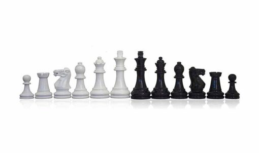 Juego de ajedrez Staunton tallado a mano en madera maciza con acabado lacado en los colores originales del ajedrez, blanco y negro.