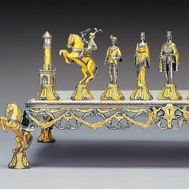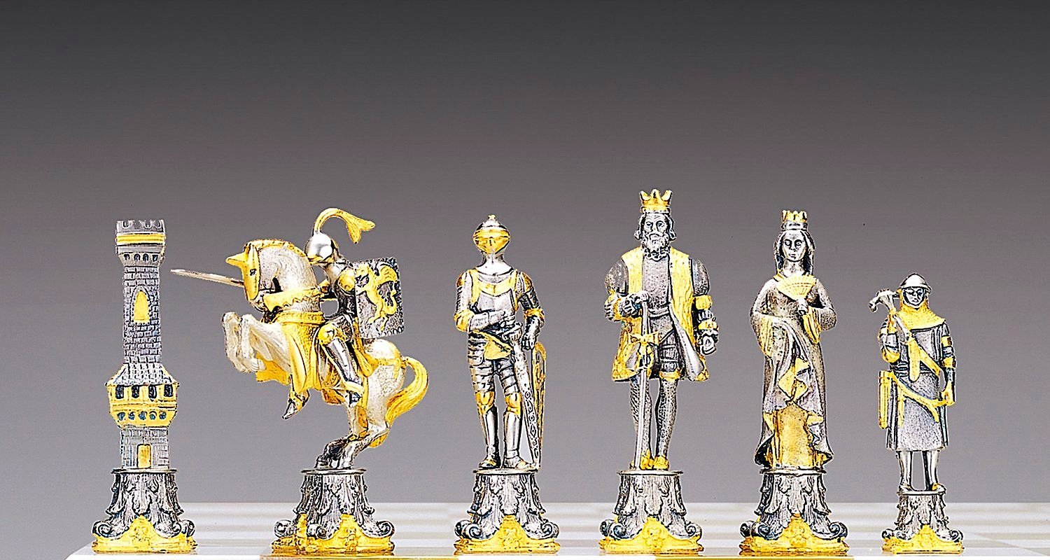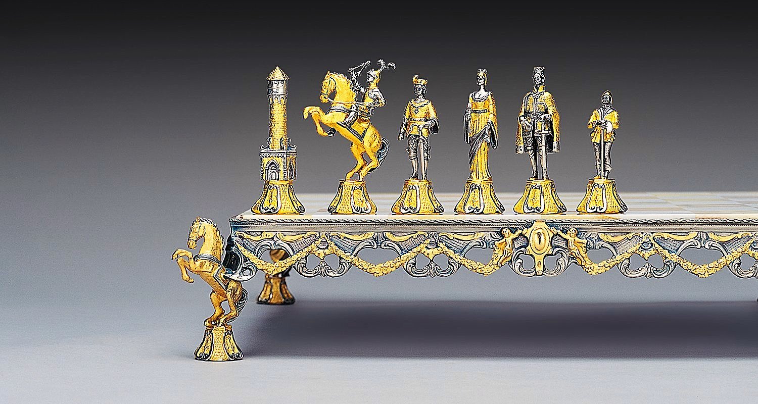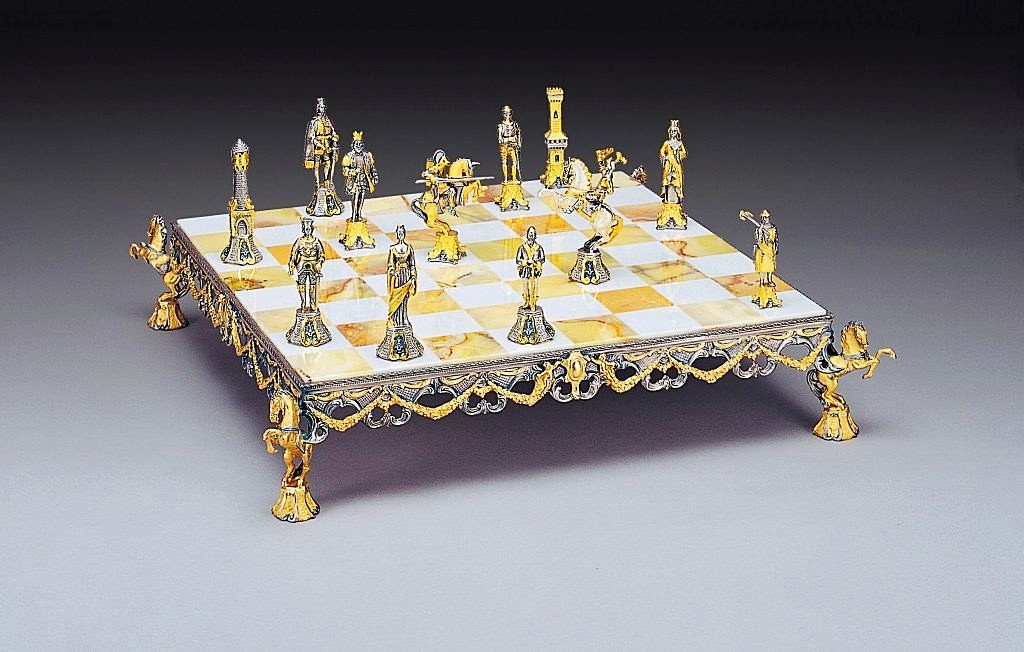 Acabado : Oro de 24 quilates. Las patas del ajedrez están realizadas en escultura en forma de caballo.