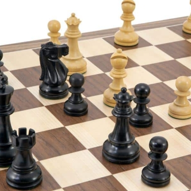 Conjunto Broadbase III Tablero de Ajedrez de Madera de Nogal y Arce y Piezas de Ajedrez de Madera de Bujes y de Bujes Ebonizados