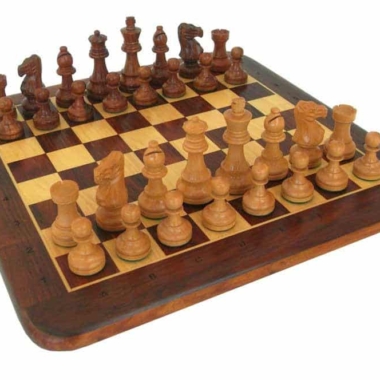 Un conjunto de juego de ajedrez y tablero en madera de rosa dorada que es una madera de gran calidad, permitiendo un confort de juego máximo mientras se mantiene accesible para todos.