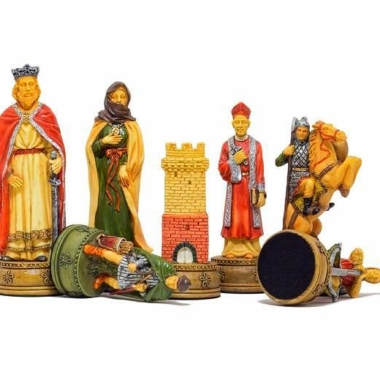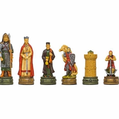 Conjunto de Ajedrez Camelot – Piezas de Resina Pintadas a Mano sobre Tablero de Madera de Brezo y Arce Verde
