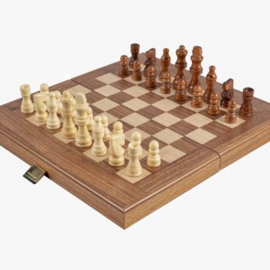 Este conjunto de juego de viaje 3 en 1 reúne tres tipos de juego: ajedrez, backgammon y damas en un solo estuche compacto y elegante. Confeccionado en marquetería de madera de nogal y roble, es una idea de regalo ideal para los amantes de los juegos tradicionales. Se ofrece en tres dimensiones a elegir (ver menú desplegable).