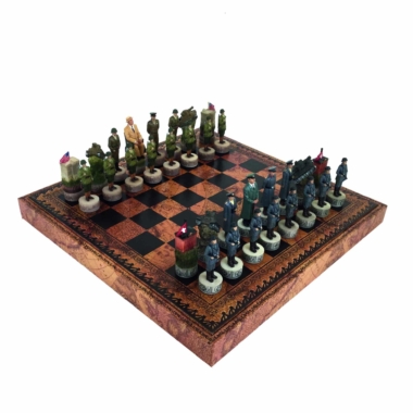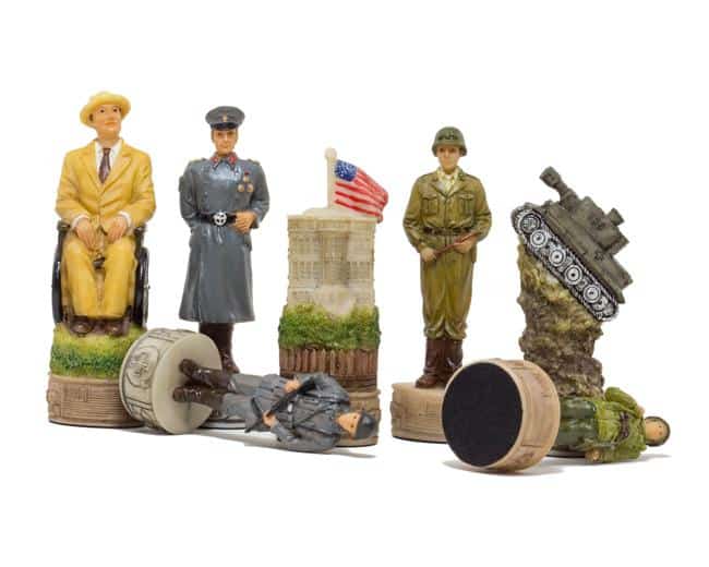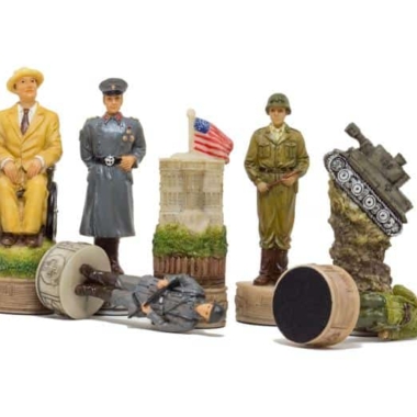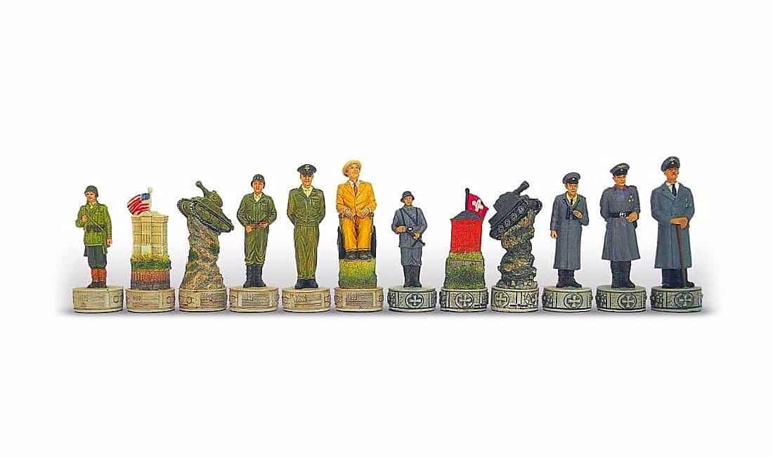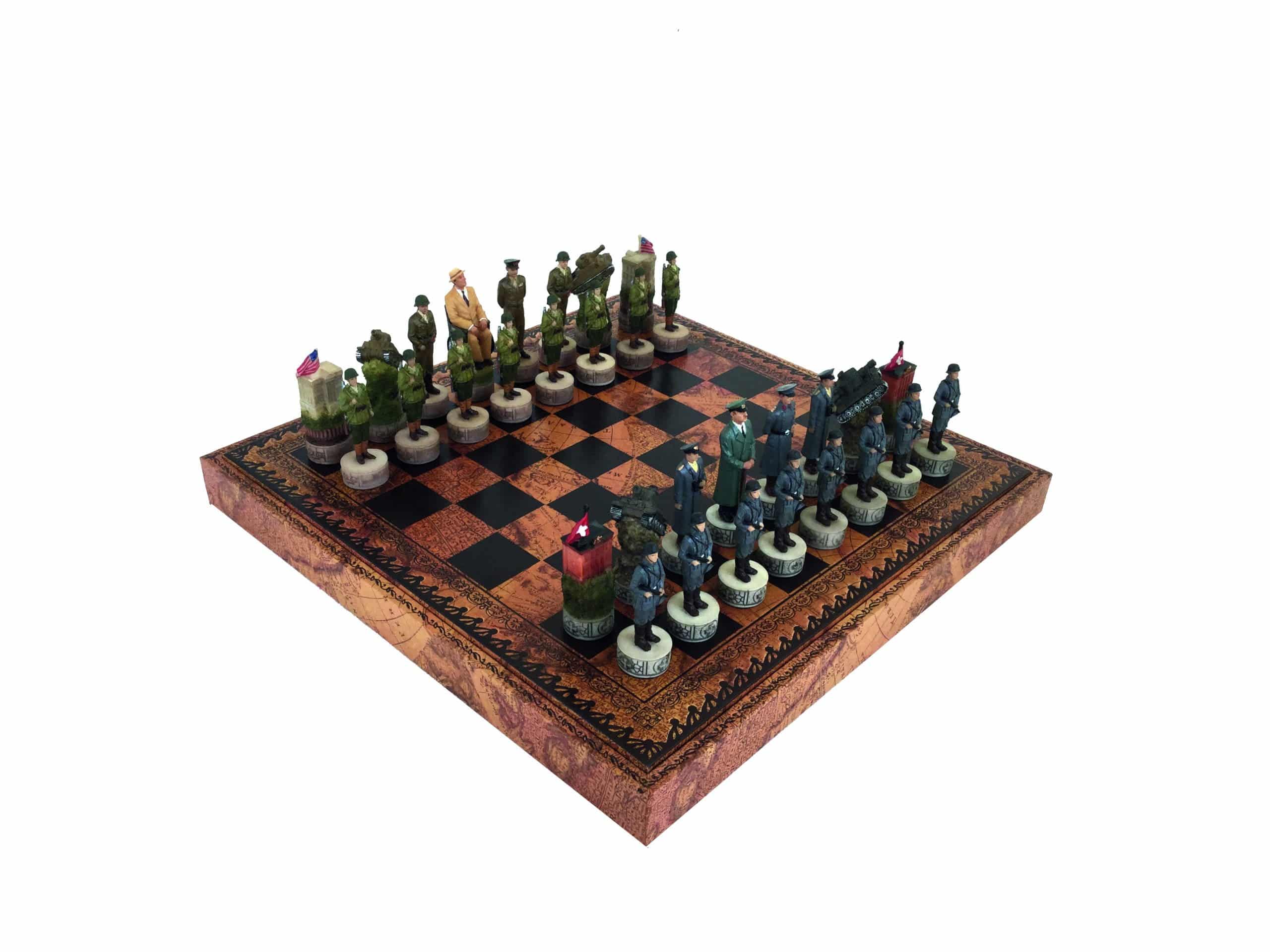 Conjunto de Ajedrez de la Segunda Guerra Mundial – Piezas de Resina Pintadas a Mano con Almacenamiento Integrado