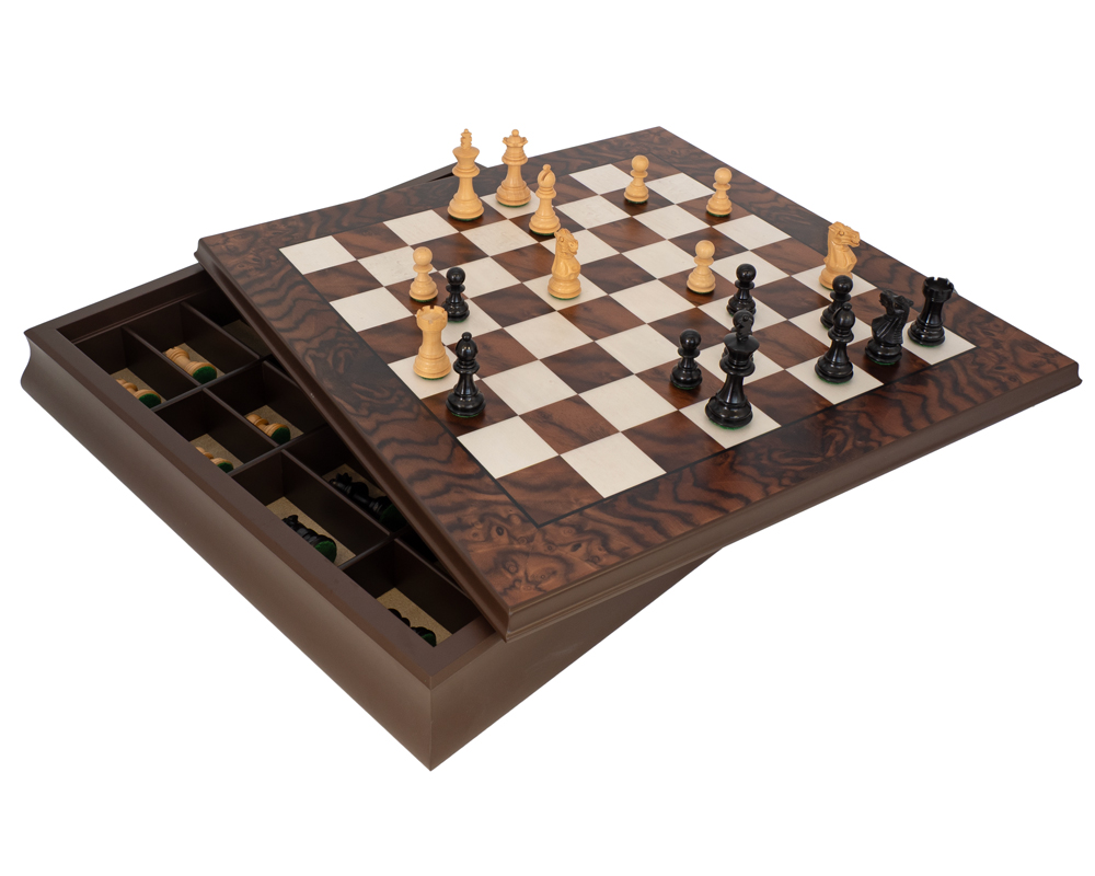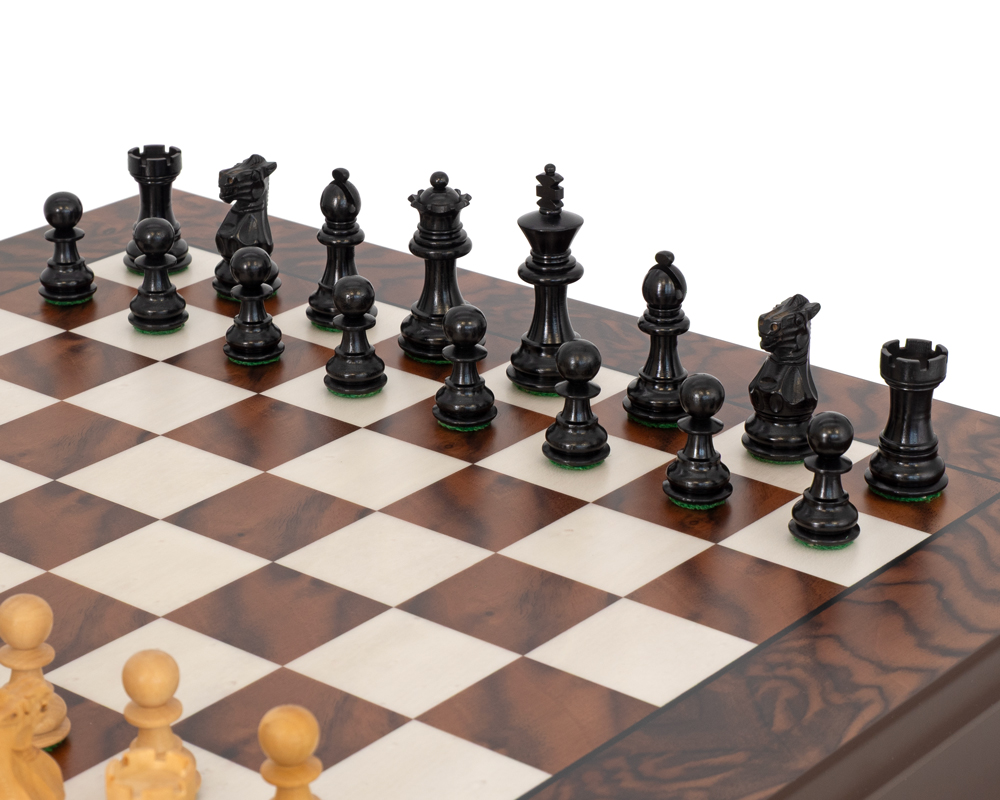 Conjunto de Ajedrez de Lujo Kingsclere en Madera de Ébano y Nogal con Almacenamiento