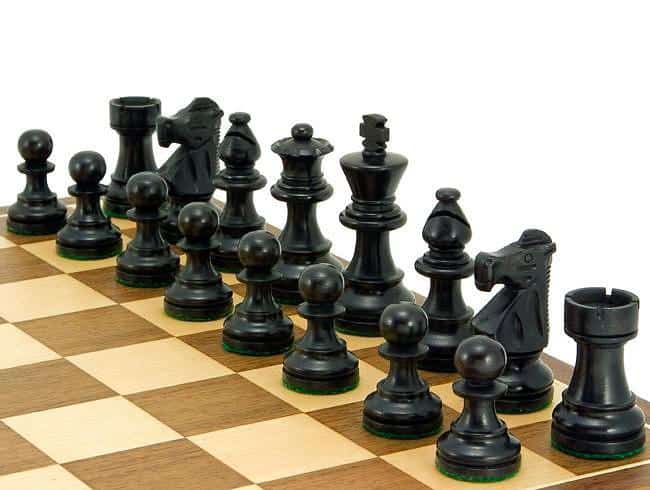 Este conjunto contiene piezas de ajedrez de madera de boxwood ebonizado. Las piezas están talladas a mano y pulidas con ceras naturales, también están ponderadas y tienen bases verdes acolchadas.