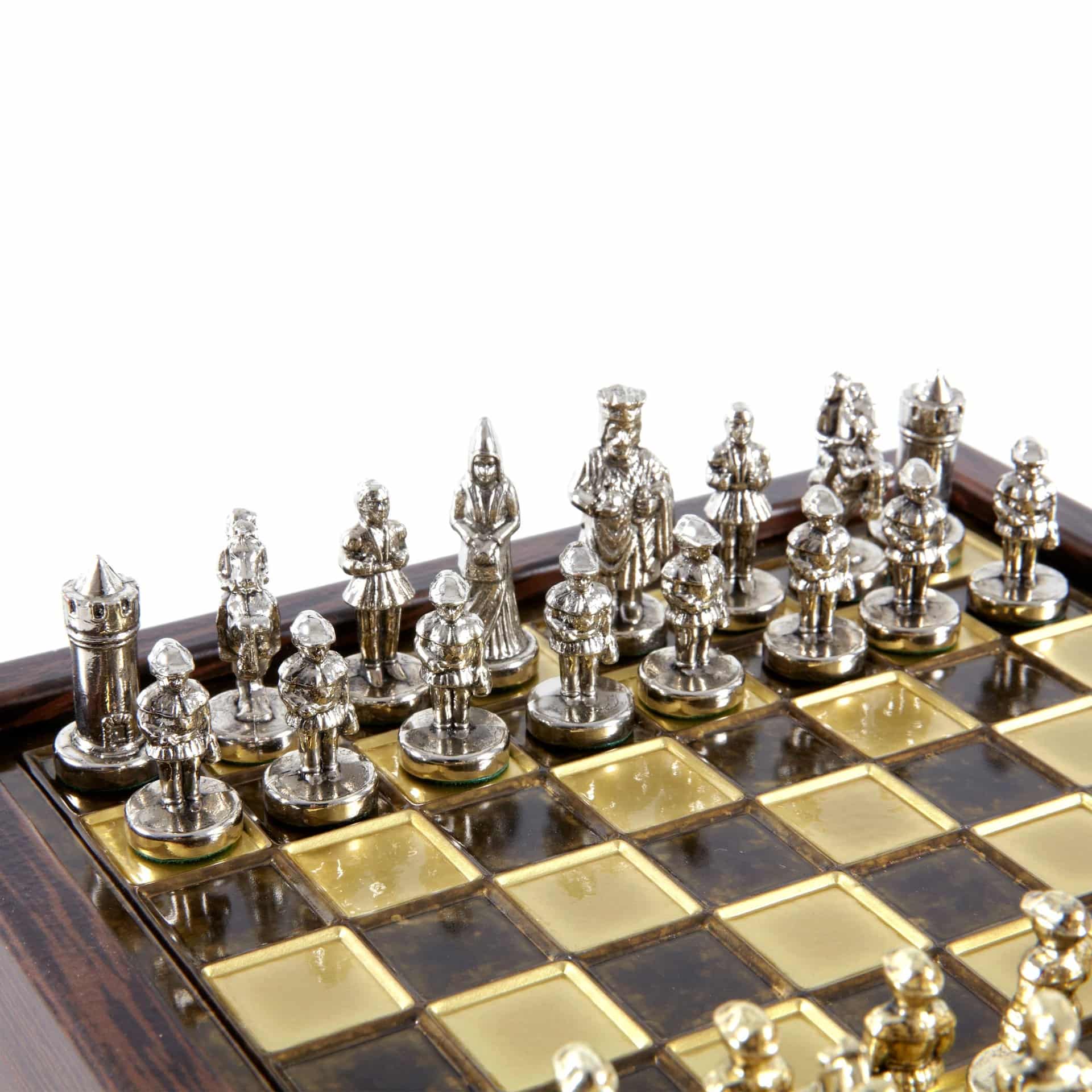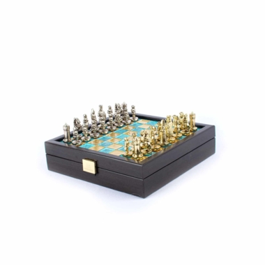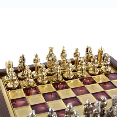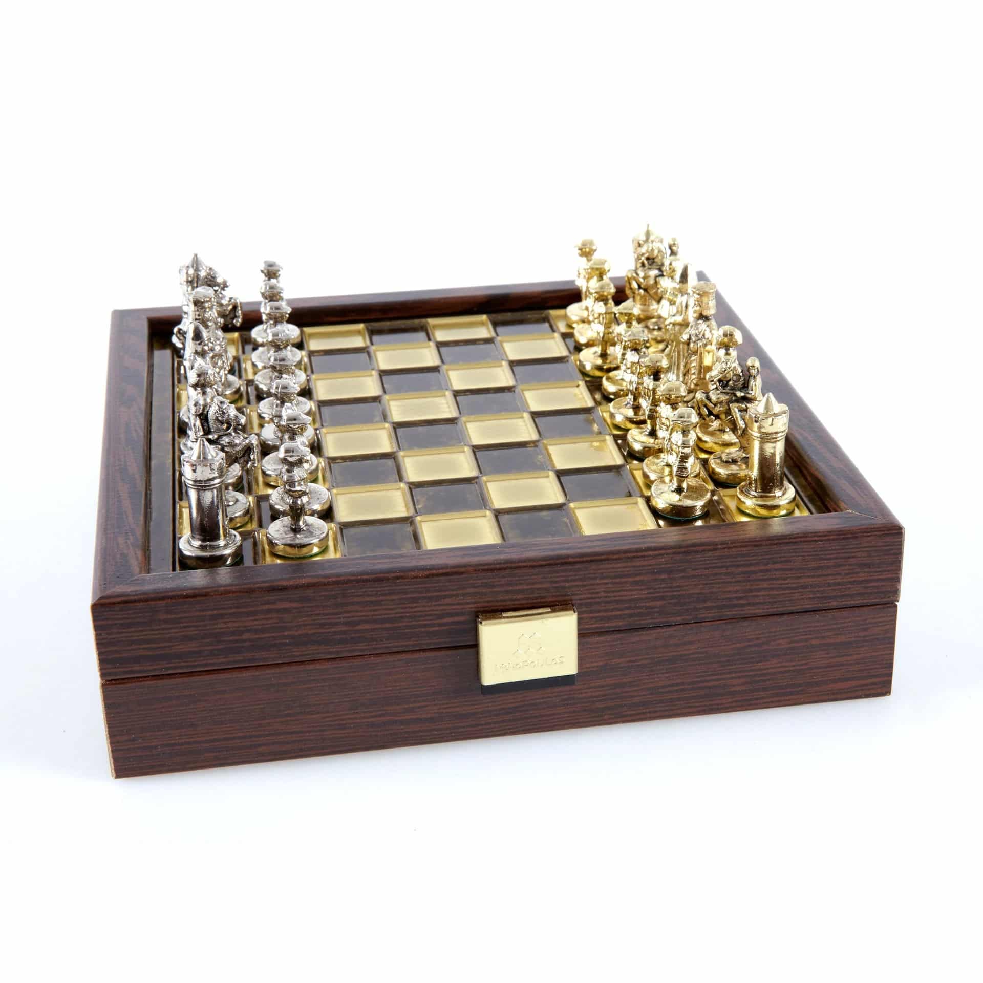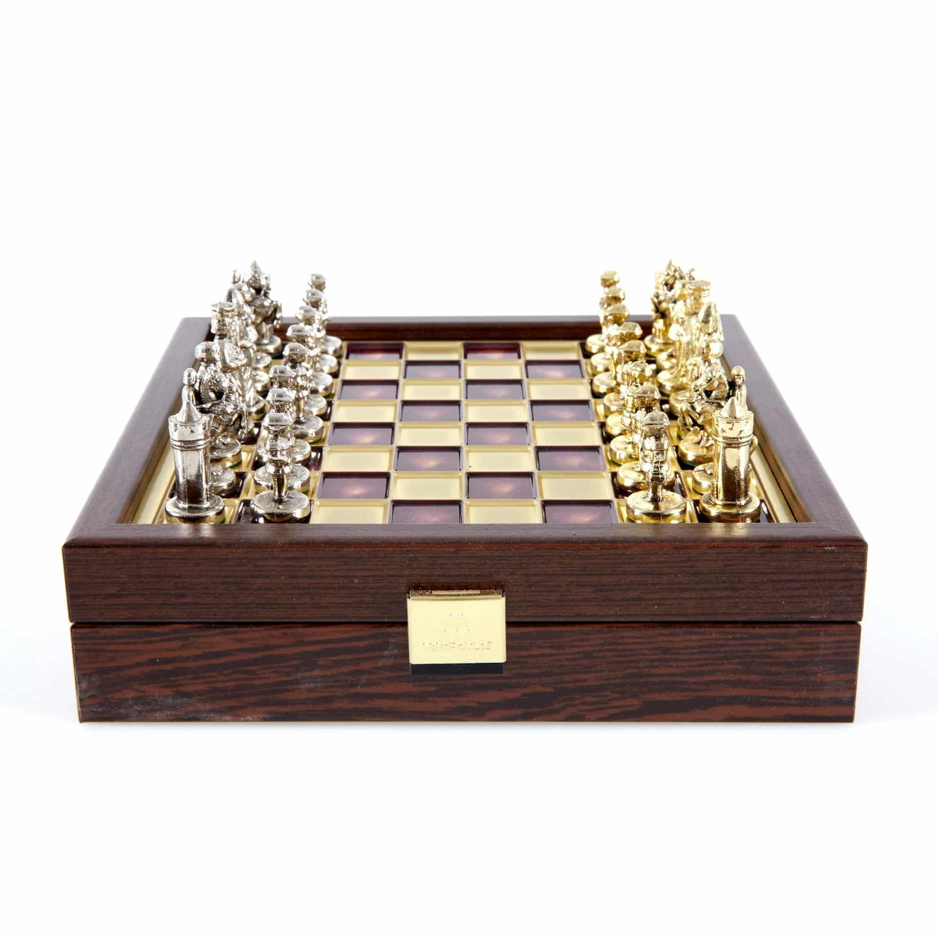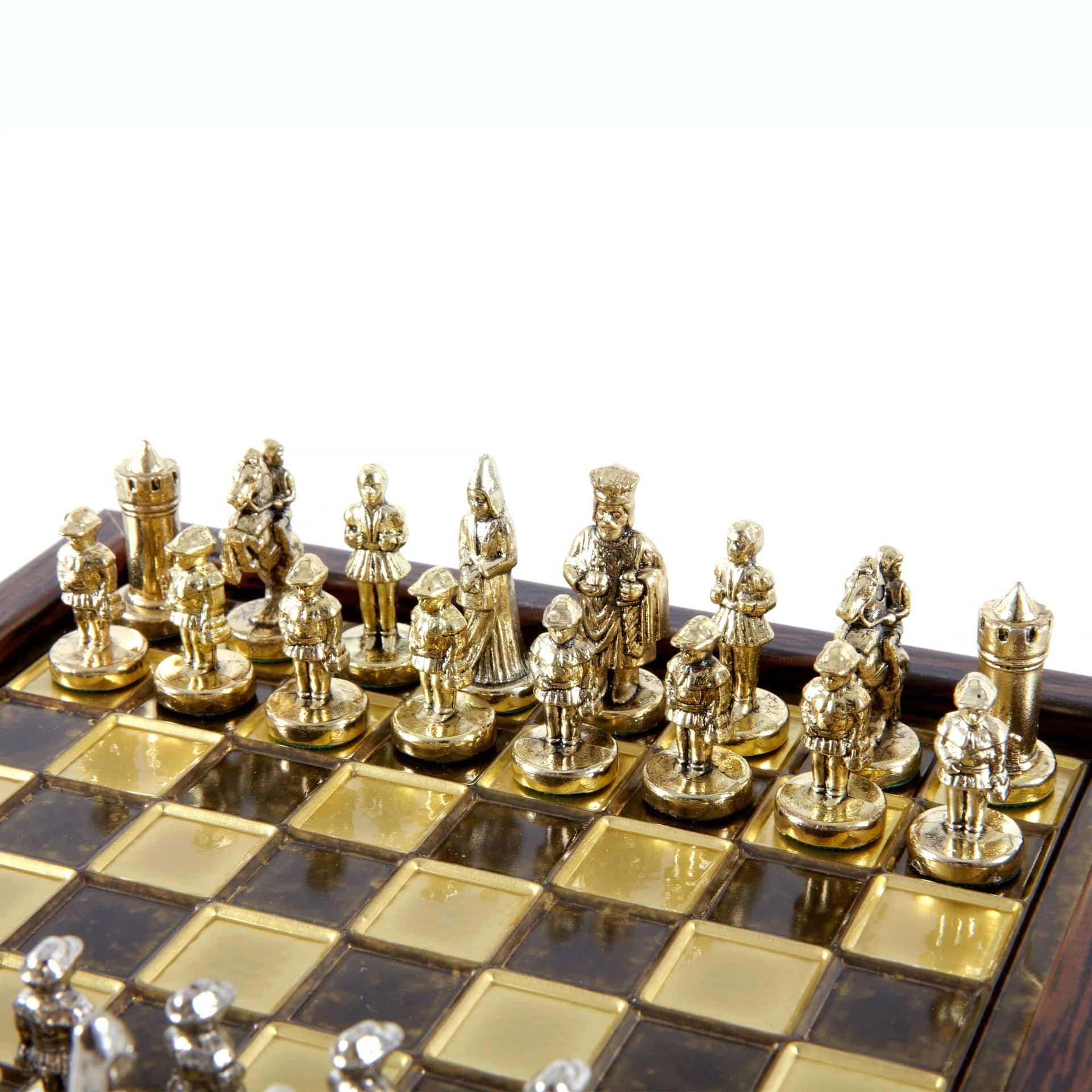 Conjunto de Ajedrez Imperio Bizantino con Caja de Almacenamiento – Oro y Plata