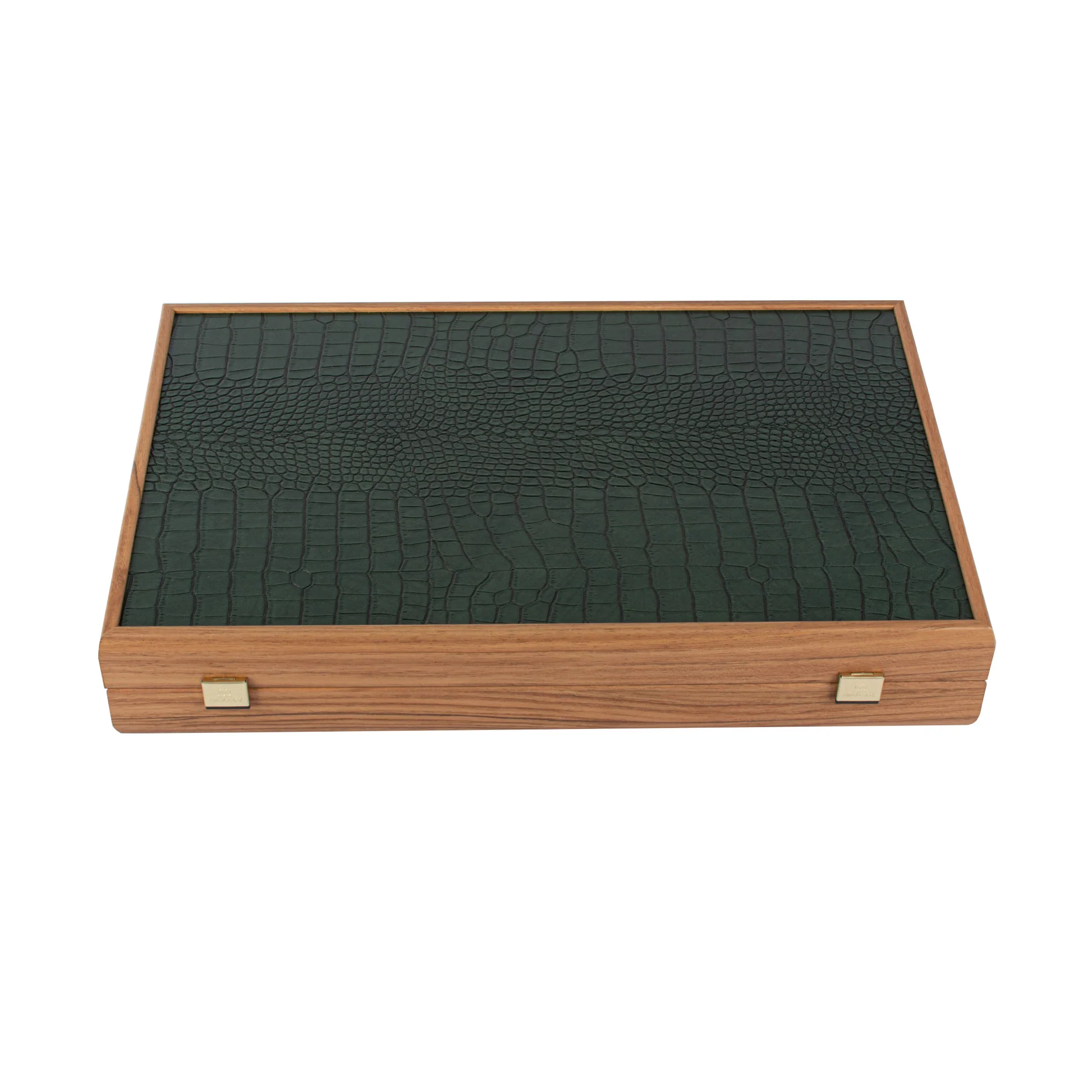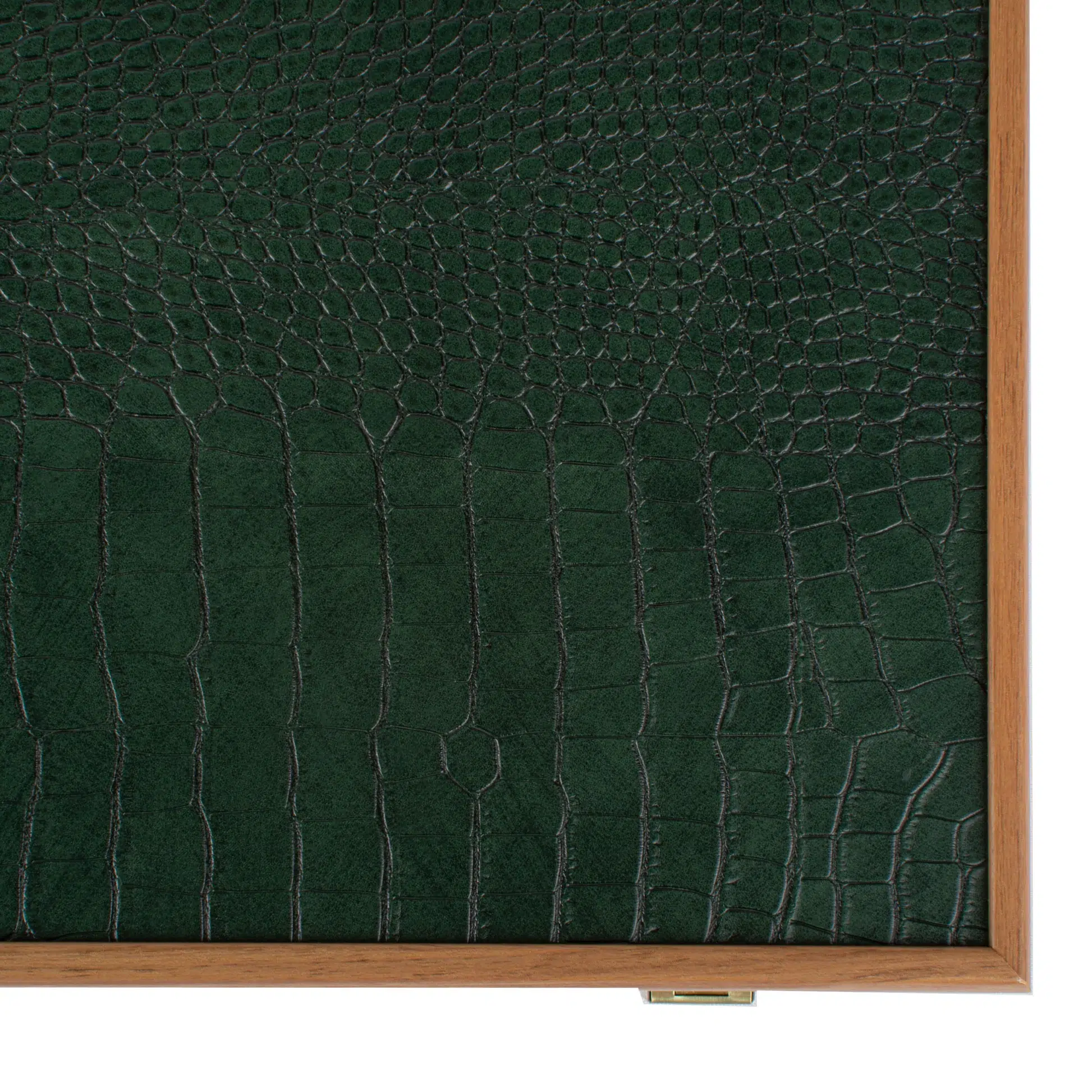 Conjunto de Backgammon en Similicuir Cocodrilo – Verde, Moka e Marfil
