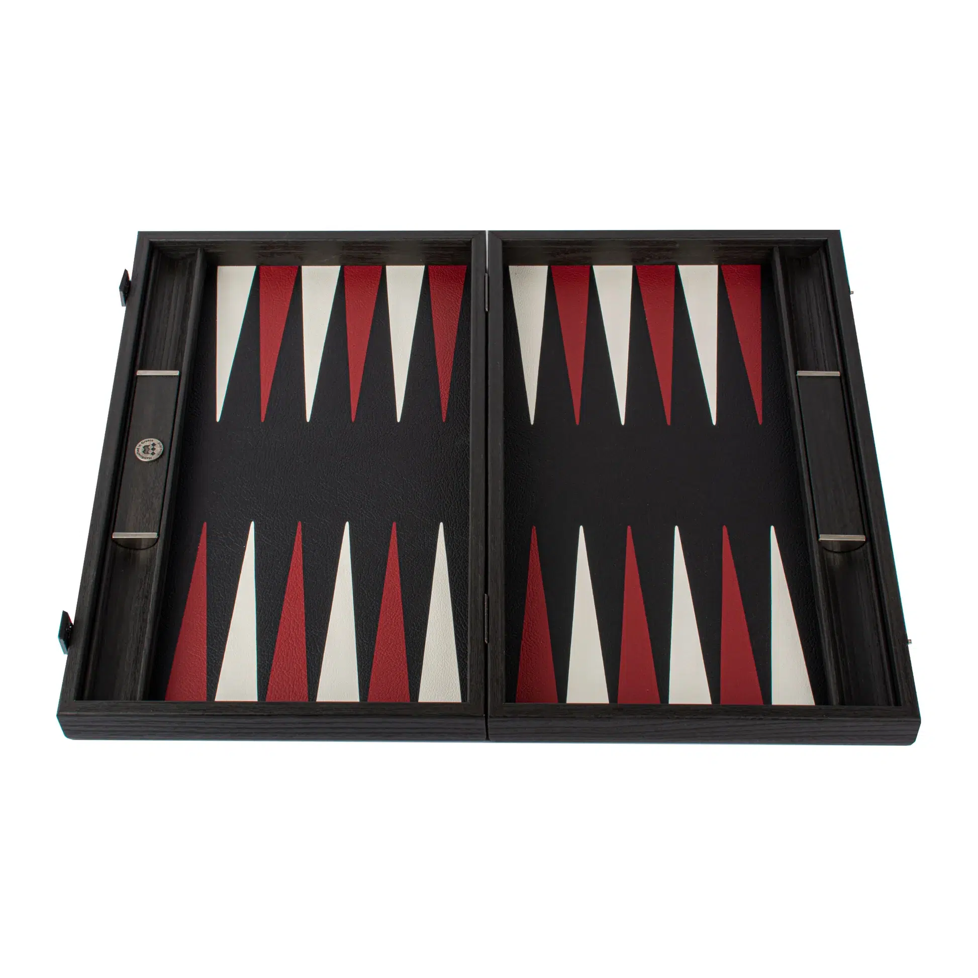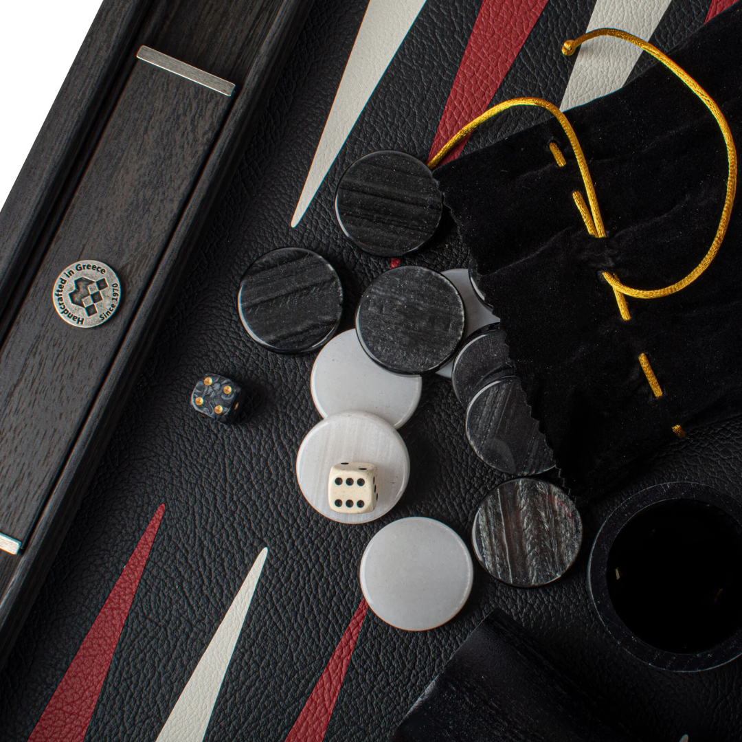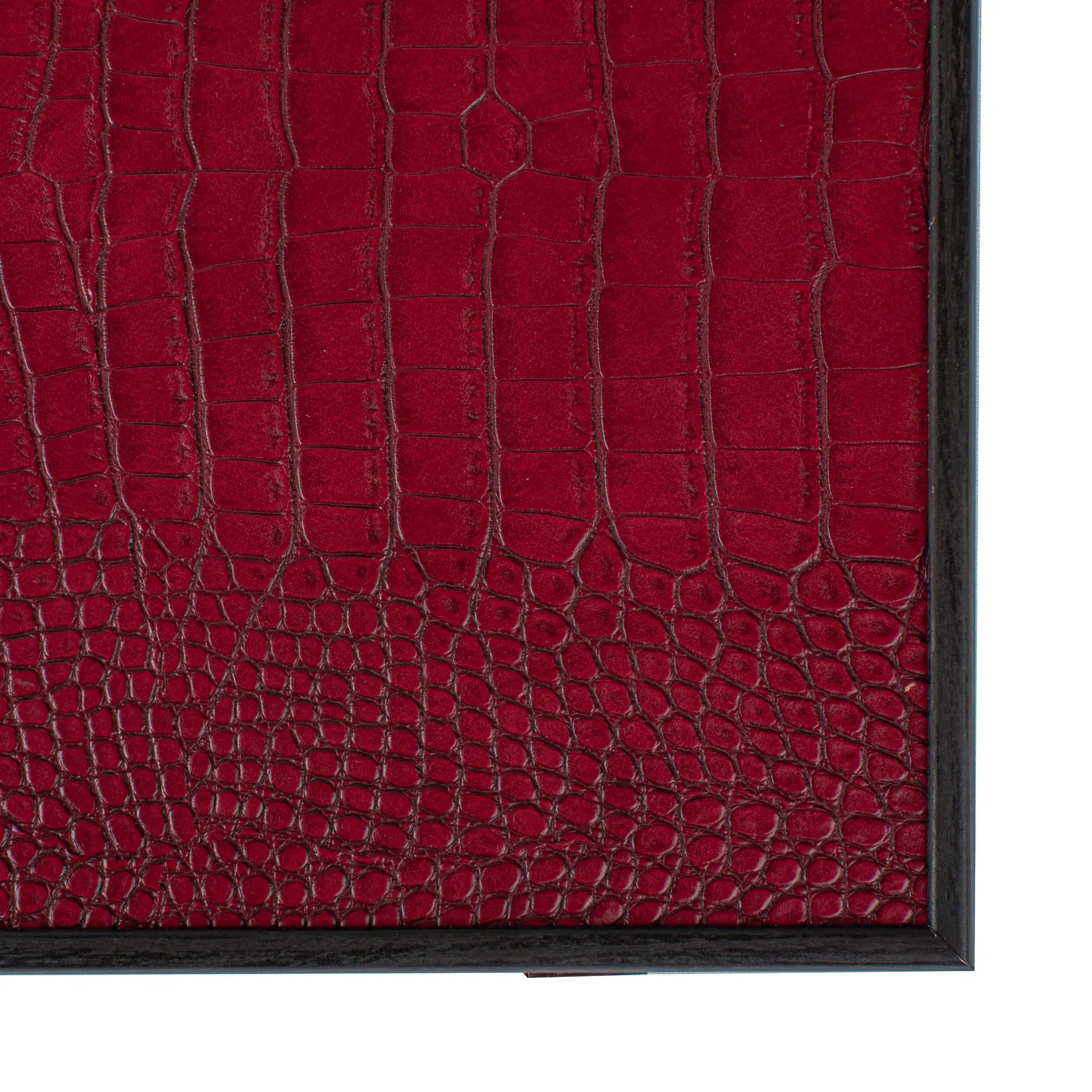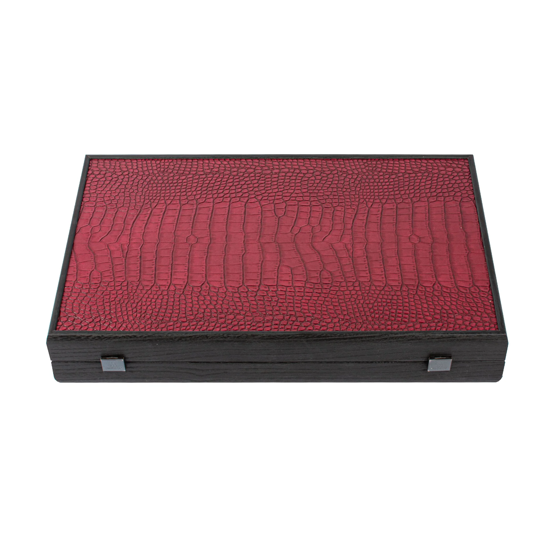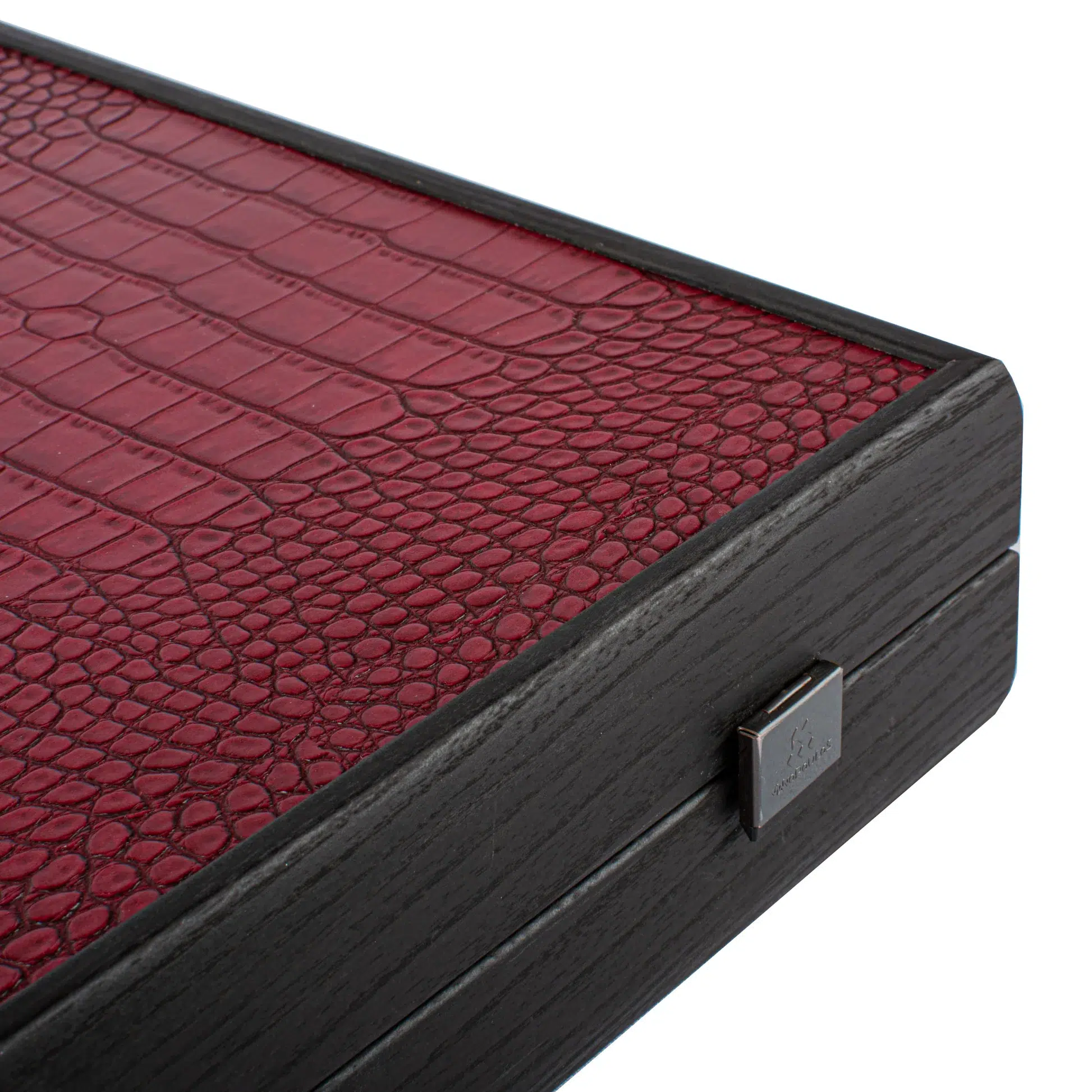 Conjunto de Backgammon en Similicuir Cocodrilo Rojo Burdeos, Negro y Blanco