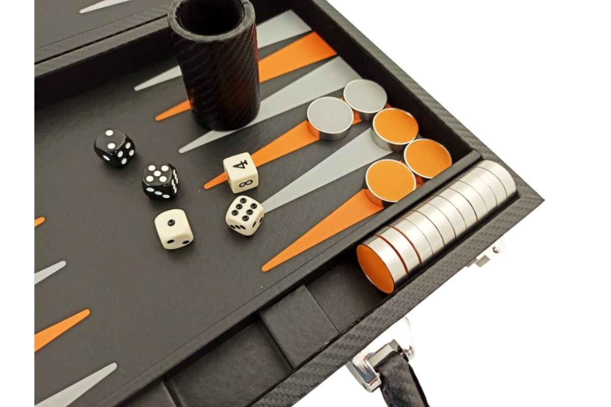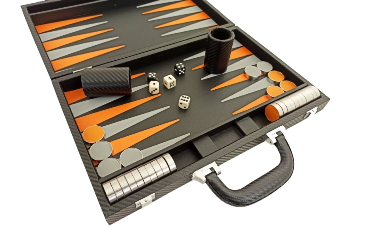 Conjunto de Backgammon Plegable en Similicuir Negro y Naranja