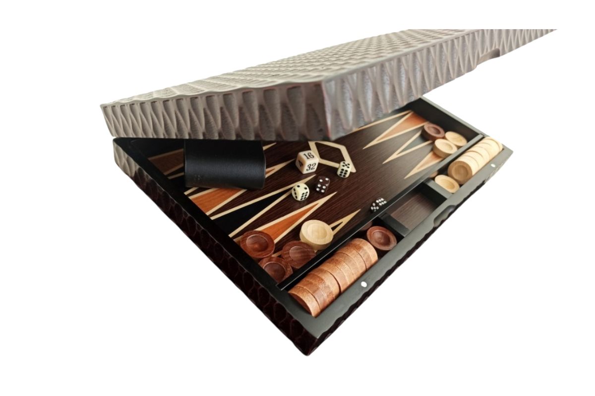 Conjunto de Backgammon en Madera Esculpida Plegable para jugar en cualquier circunstancia.