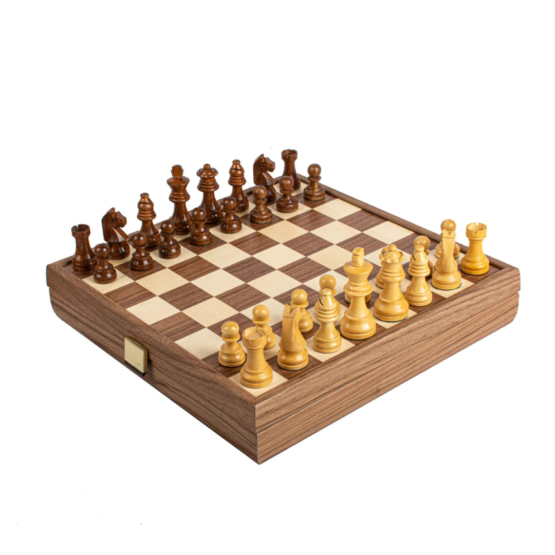 Conjunto de Piezas de Ajedrez y Tablero de Madera de Nogal y Roble con Almacenamiento Integrado