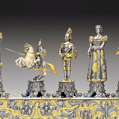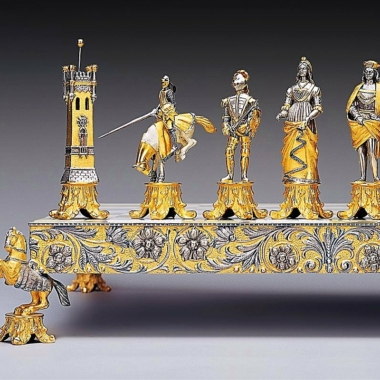Acabado : Oro de 24 quilates. Las patas del tablero están realizadas en escultura en forma de caballos sobre un pedestal.