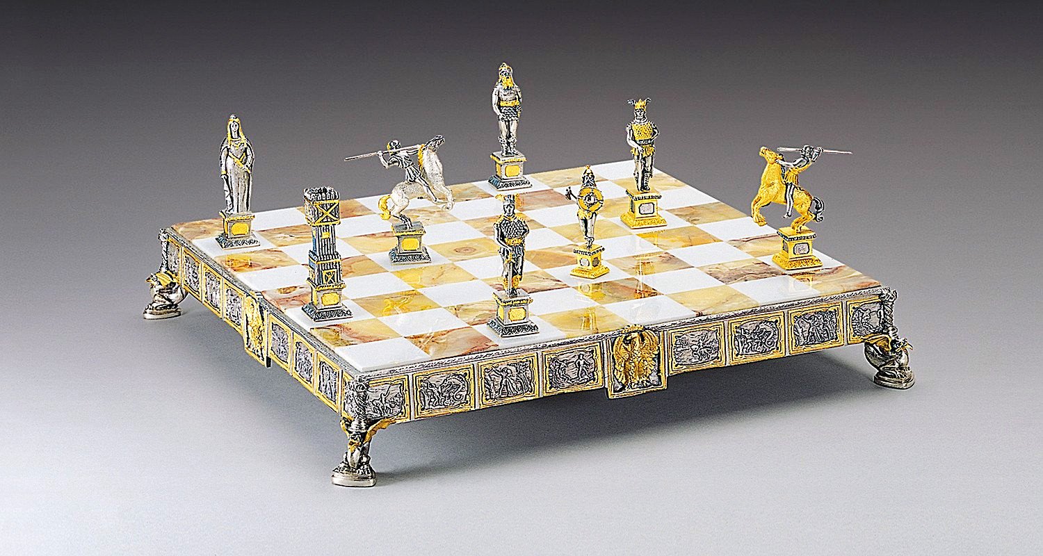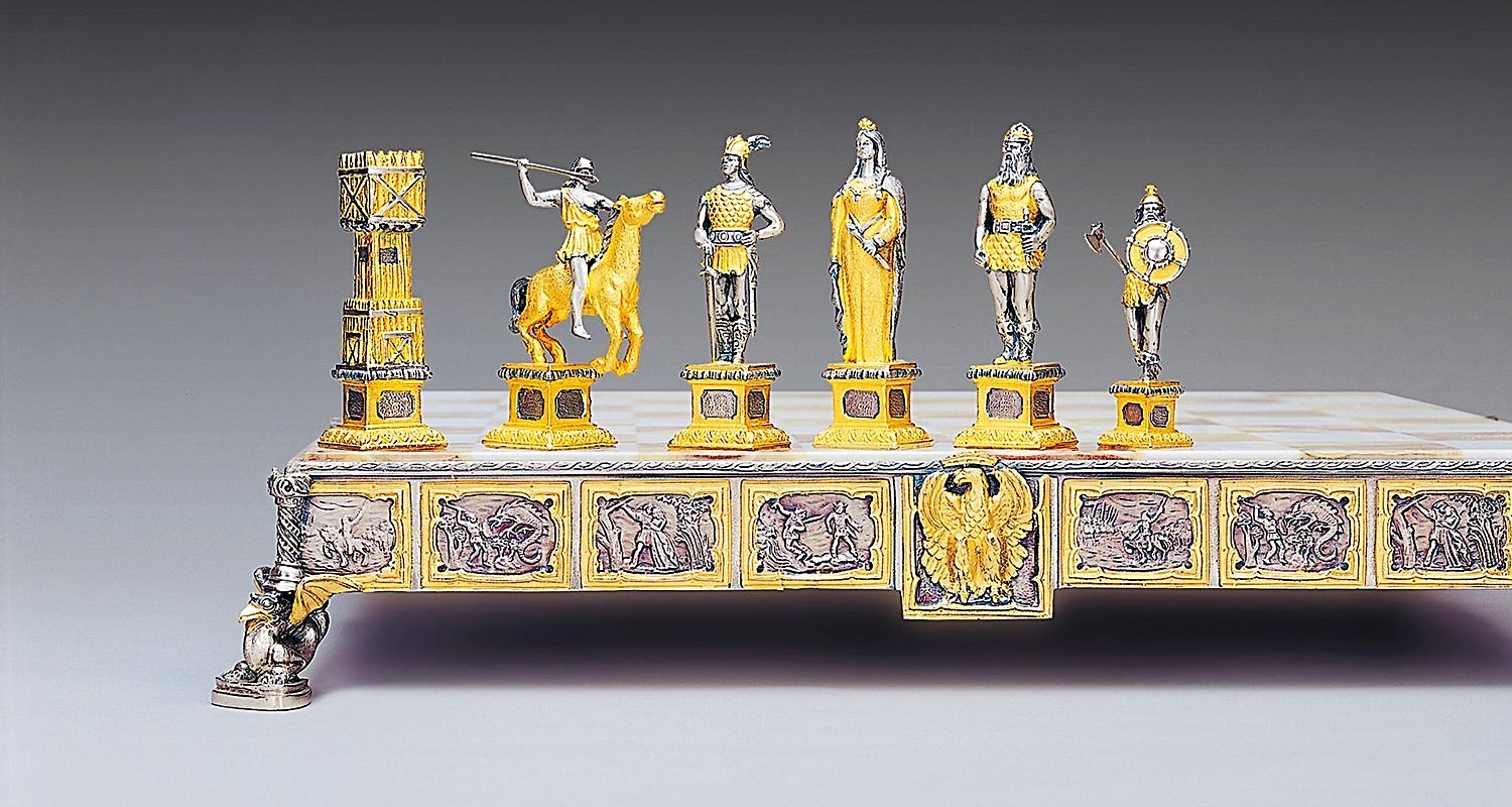Acabado : Oro de 24 quilates. Las patas del ajedrez están realizadas en escultura en forma de pequeños dragones.