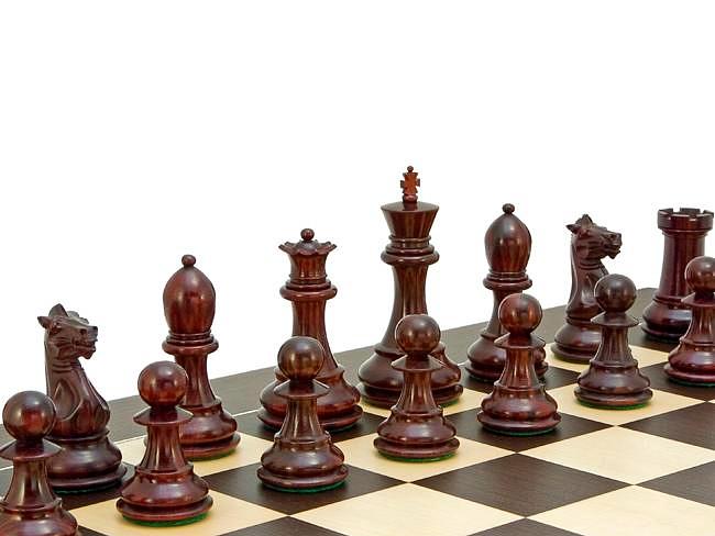 Las piezas de ajedrez están esculpidas y pulidas en una madera preciosa de sándalo rojo.