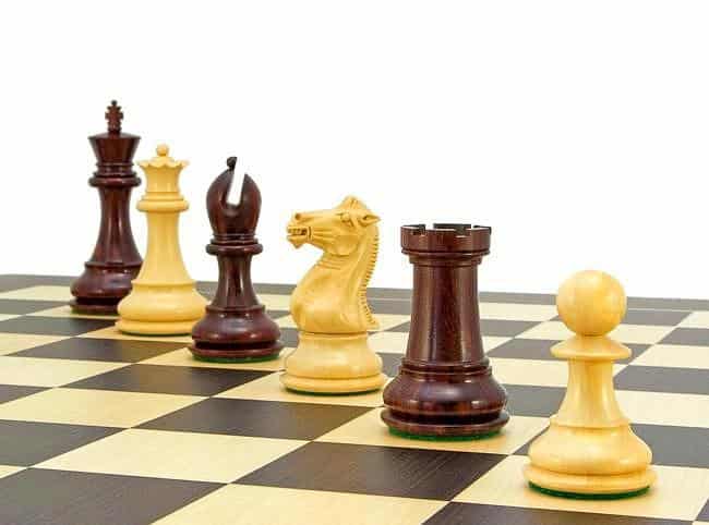 El tablero de ajedrez está esculpido en madera de wengué y arce, el Wengué es una madera oscura con un tono cálido que complementa muy bien las piezas de ajedrez de madera de sándalo rojo.