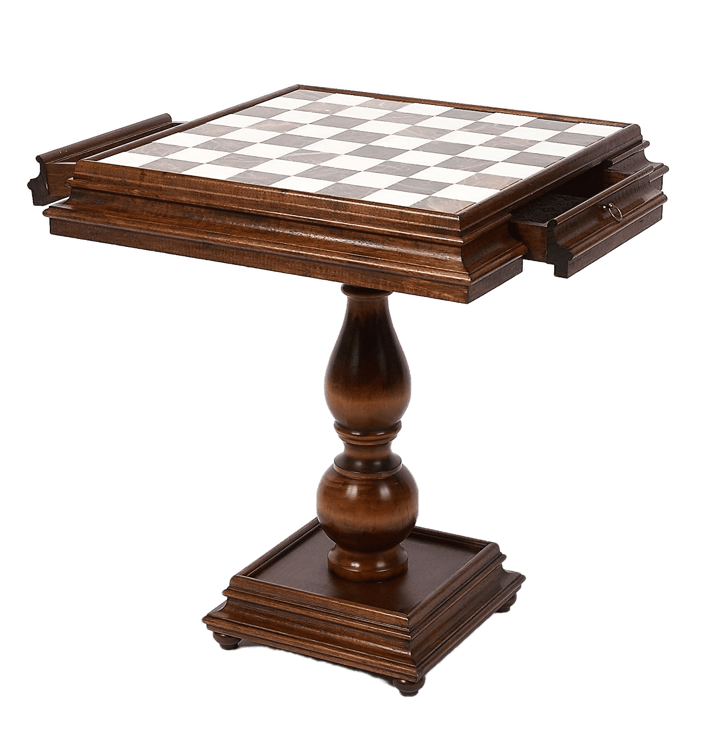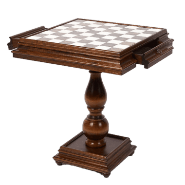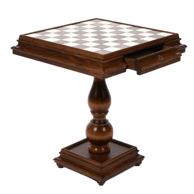 Esta mesa se beneficia de un acabado artesanal de alta calidad, el resultado final es de una gran sobriedad y acompaña maravillosamente al juego de ajedrez. La mesa incorpora dos cajones de almacenamiento para las piezas de ajedrez.