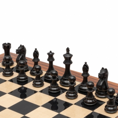 Gran Juego de Ajedrez Caballero Negro en Madera de Boxwood Ebonizado & Tablero de Ajedrez en Madera de Anégre Negro y Arce Lacado