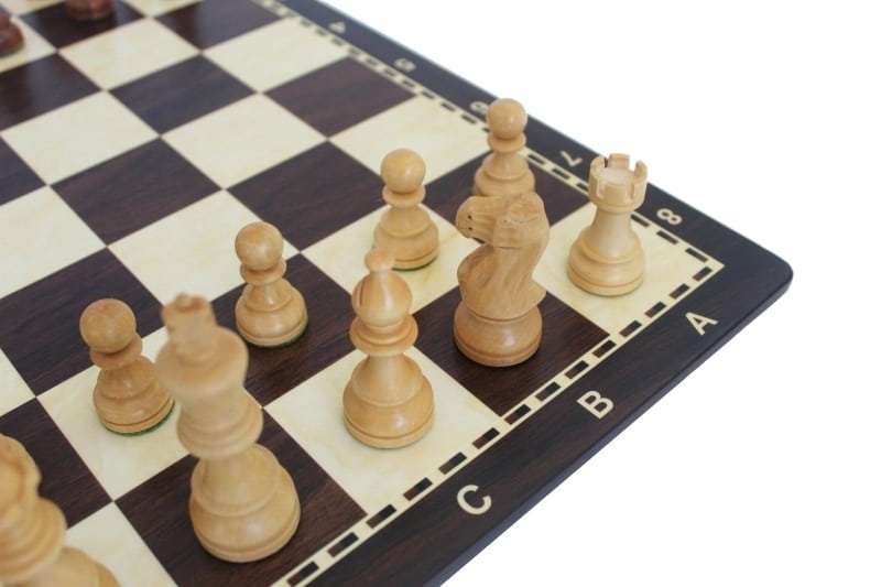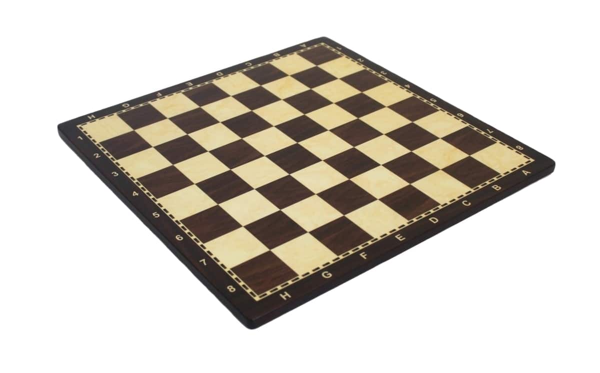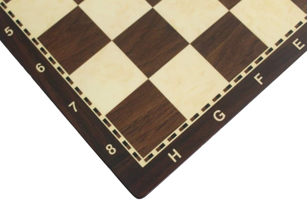 Vienen acompañadas de un tablero de ajedrez de madera con un marcado alfanumérico, es de gran tamaño con una dimensión de 50 x 50 cm. Incluye en sus bordes un marcado alfanumérico.