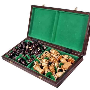 Las piezas de ajedrez están hechas de madera de tilo y cerezo y tienen una altura de rey de 12 cm. Son finas y están bellamente trabajadas a mano.