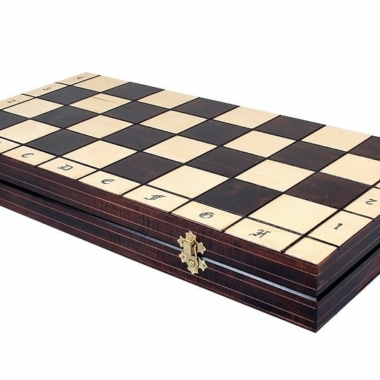 El hermoso tablero de ajedrez plegable de madera de abedul y haya cuenta con dos compartimentos que incluyen un forro de fieltro para el almacenamiento de las piezas de ajedrez en su interior. Una tipografía gótica de la notación alfanumérica ha sido colocada en los bordes claros del tablero de ajedrez de dimensiones 50 x 50 x 3 cm abierto (50 x 25 x 6 cm plegado).