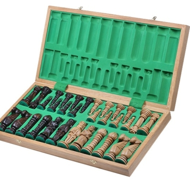 Grandes Figuras de Ajedrez Esculpidas y Tablero Plegable de Madera con Almacenamiento