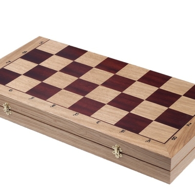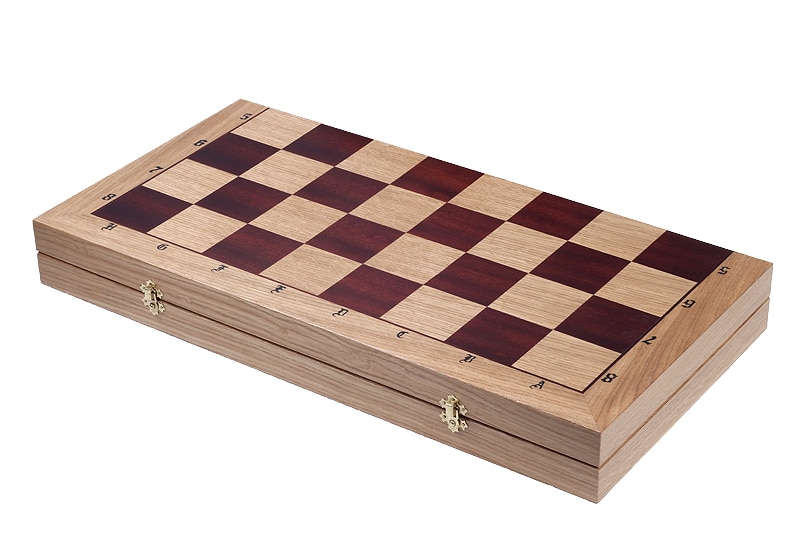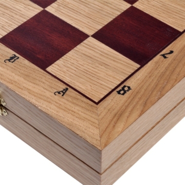 El tablero plegable está incrustado con madera de caoba y roble. Cuenta con un espacio dedicado para el almacenamiento de las piezas de ajedrez en su interior. De gran dimensión 65 x 65 x 4 cm abierto (65 x 32,5 x 8 cm cerrado) será fácil de mover y almacenar.
