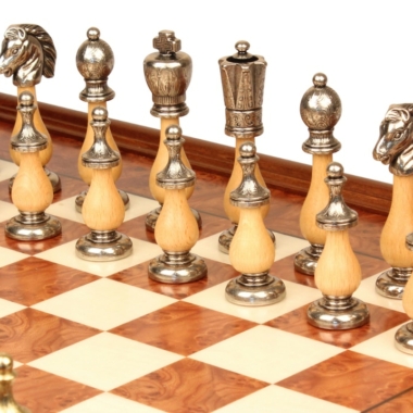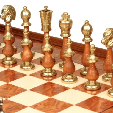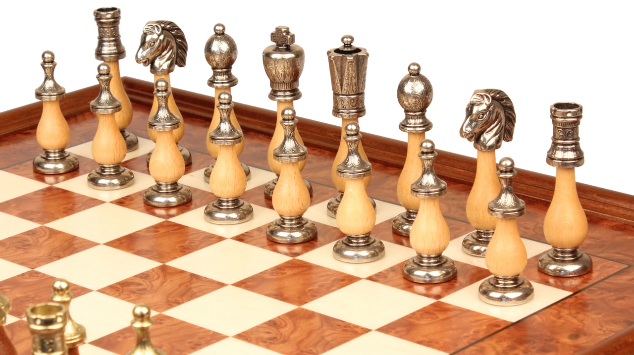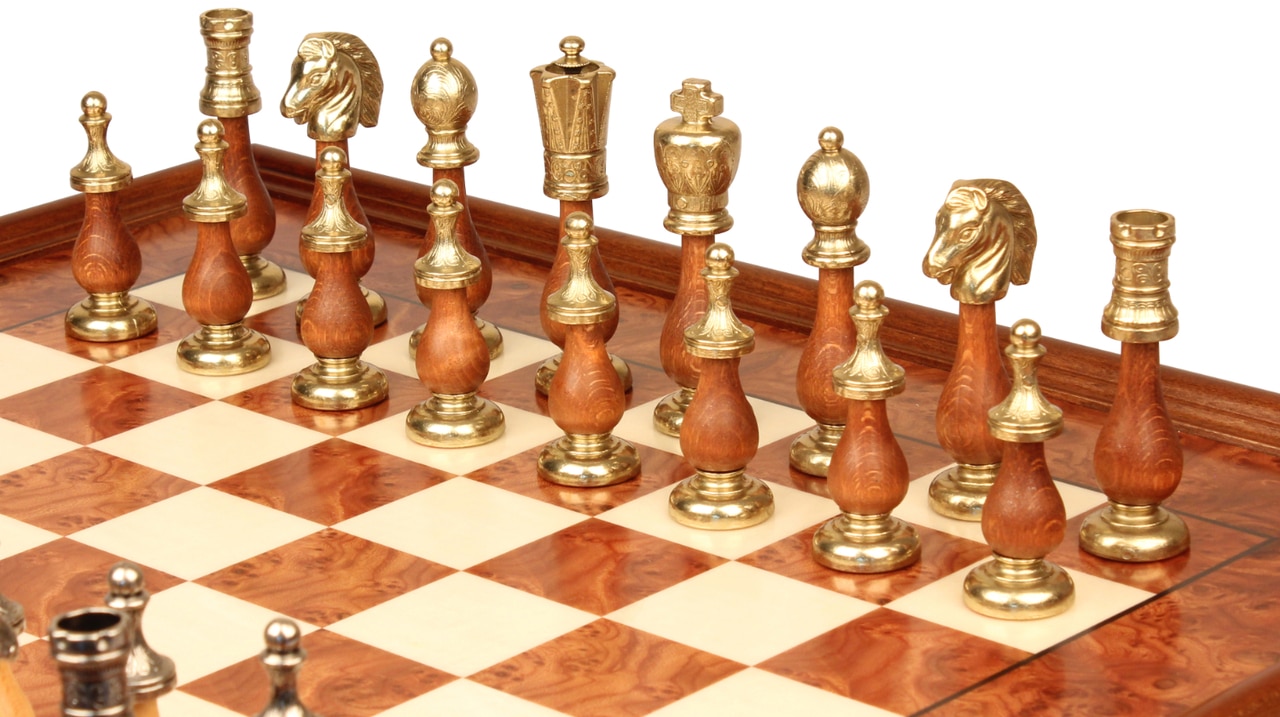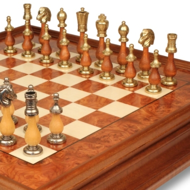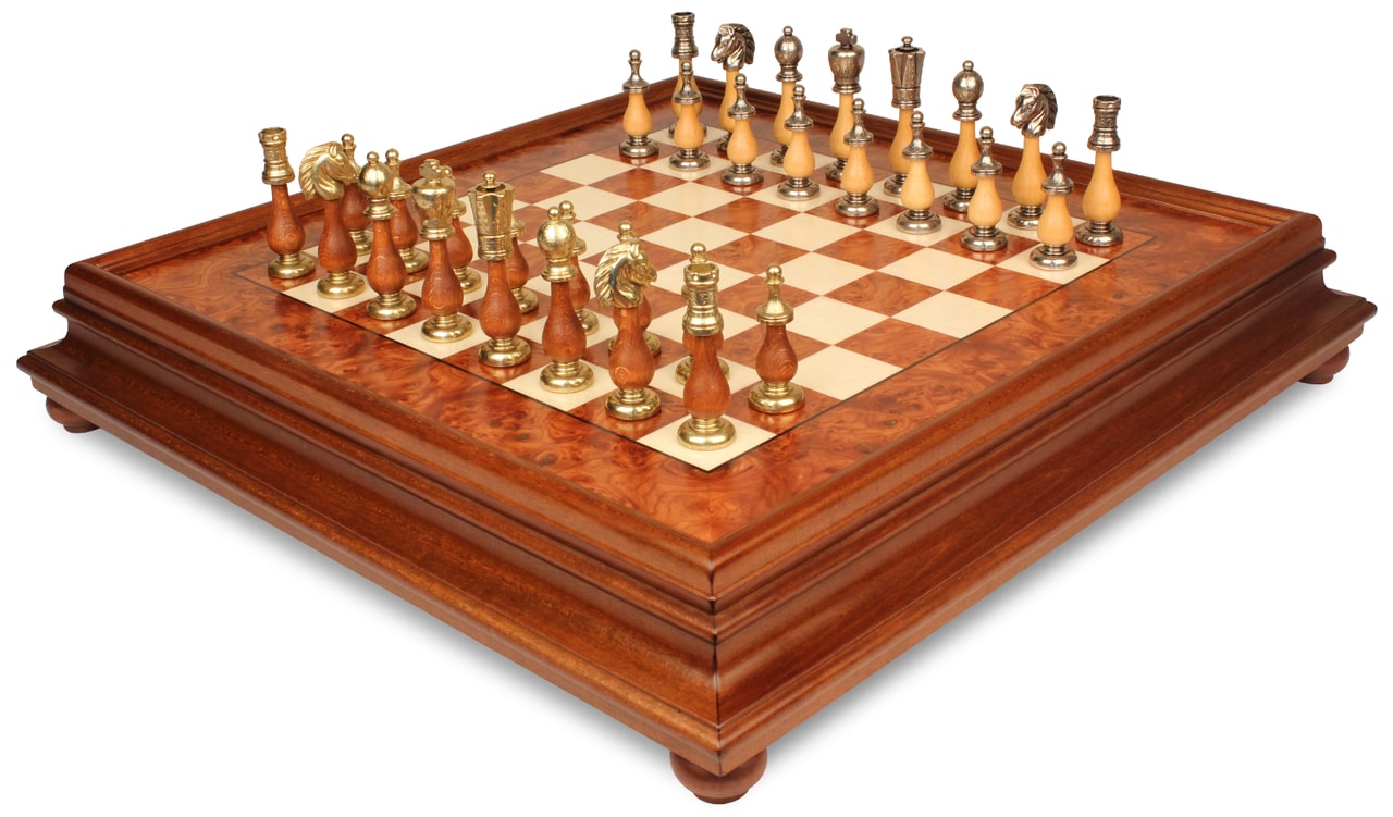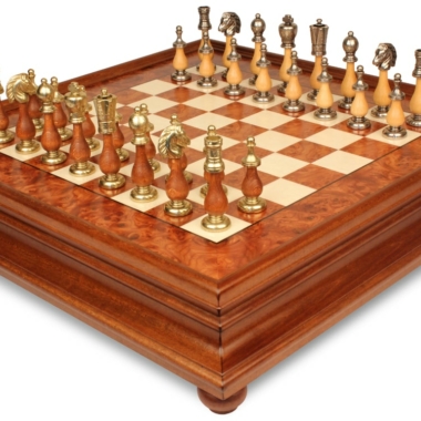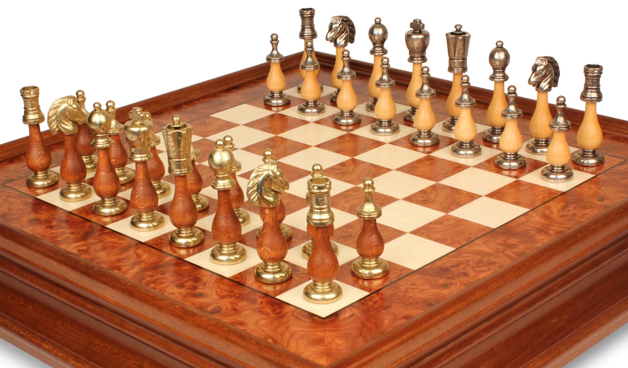 Juego de Ajedrez Arabesco – Tablero de Madera de Brezo y Madera de Olmo con Cajón & Piezas de Metal y Madera