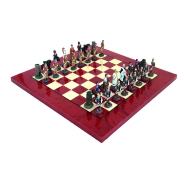 Juego de Ajedrez Batalla de Troya – Tablero de Ajedrez de Madera de Brezo Rojo y Blanco & Juego de Ajedrez de Estaño Pintado a Mano