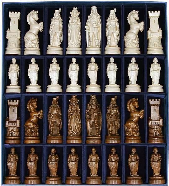 Un conjunto de piezas de ajedrez de coleccionista, realizado por artistas expertos de las escuelas de arte de Ortisei y Selva Gardena.