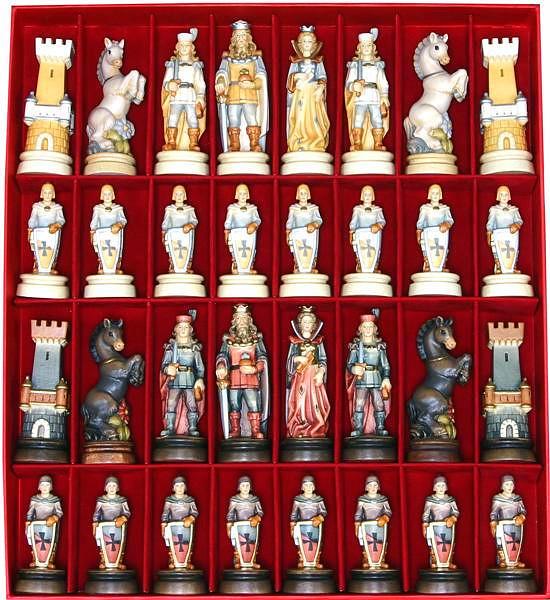 Un conjunto de piezas de ajedrez de coleccionista, realizado por artistas expertos de las escuelas de arte de Ortisei y Selva Gardena.