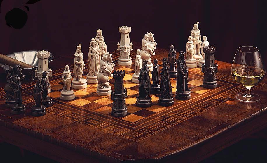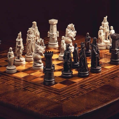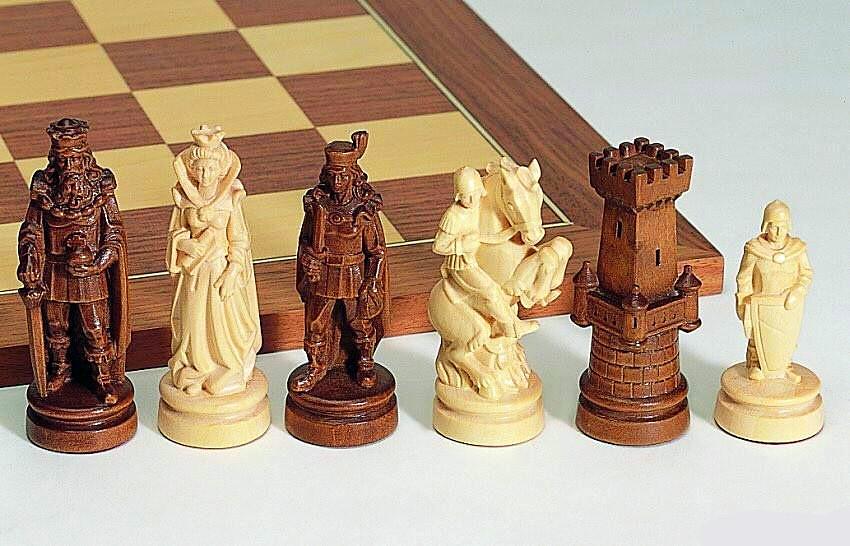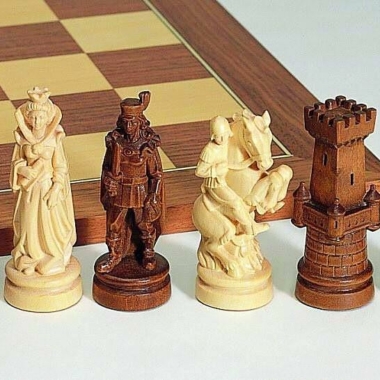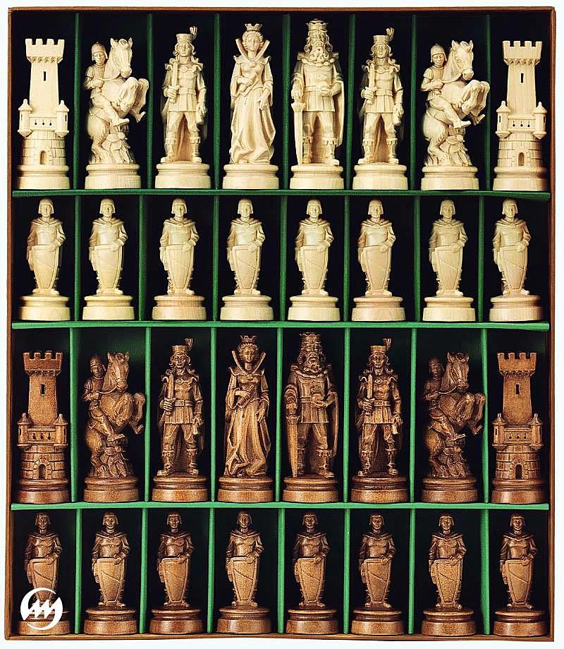 Un conjunto de piezas de ajedrez de coleccionista, realizado por artistas expertos de las escuelas de arte de Ortisei y Selva Gardena.