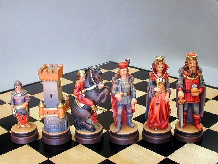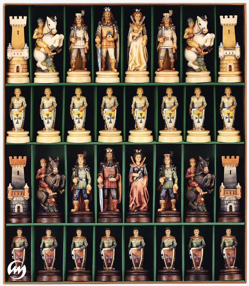 Un conjunto de piezas de ajedrez de coleccionista, realizado por artistas expertos de las escuelas de arte de Ortisei y Selva Gardena.