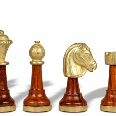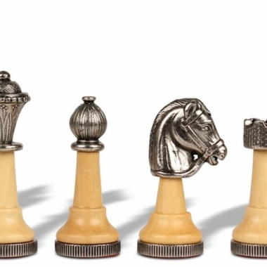 Las piezas del juego de ajedrez Clásico están fabricadas en madera y metal, completamente a mano y tienen una altura de rey de 7,5 cm.