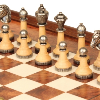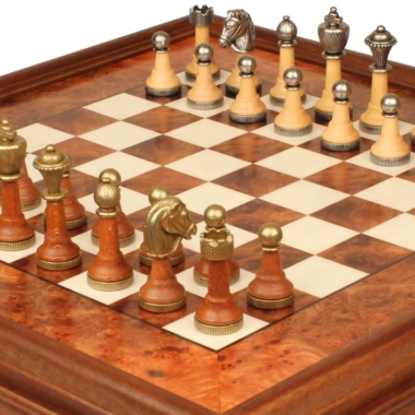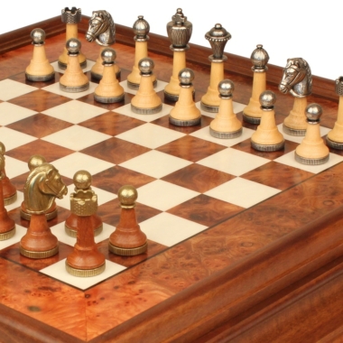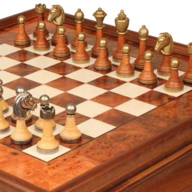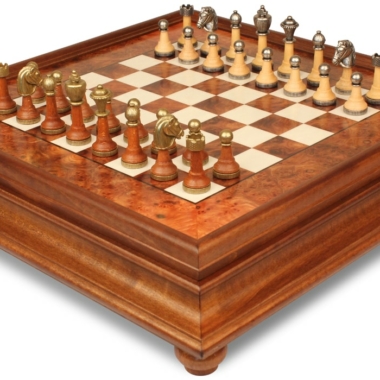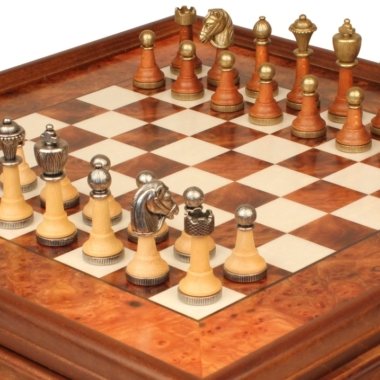 Juego de Ajedrez Clásico – Tablero de madera de Brezo y Madera de Olmo con Cajón & Piezas de Metal y Madera