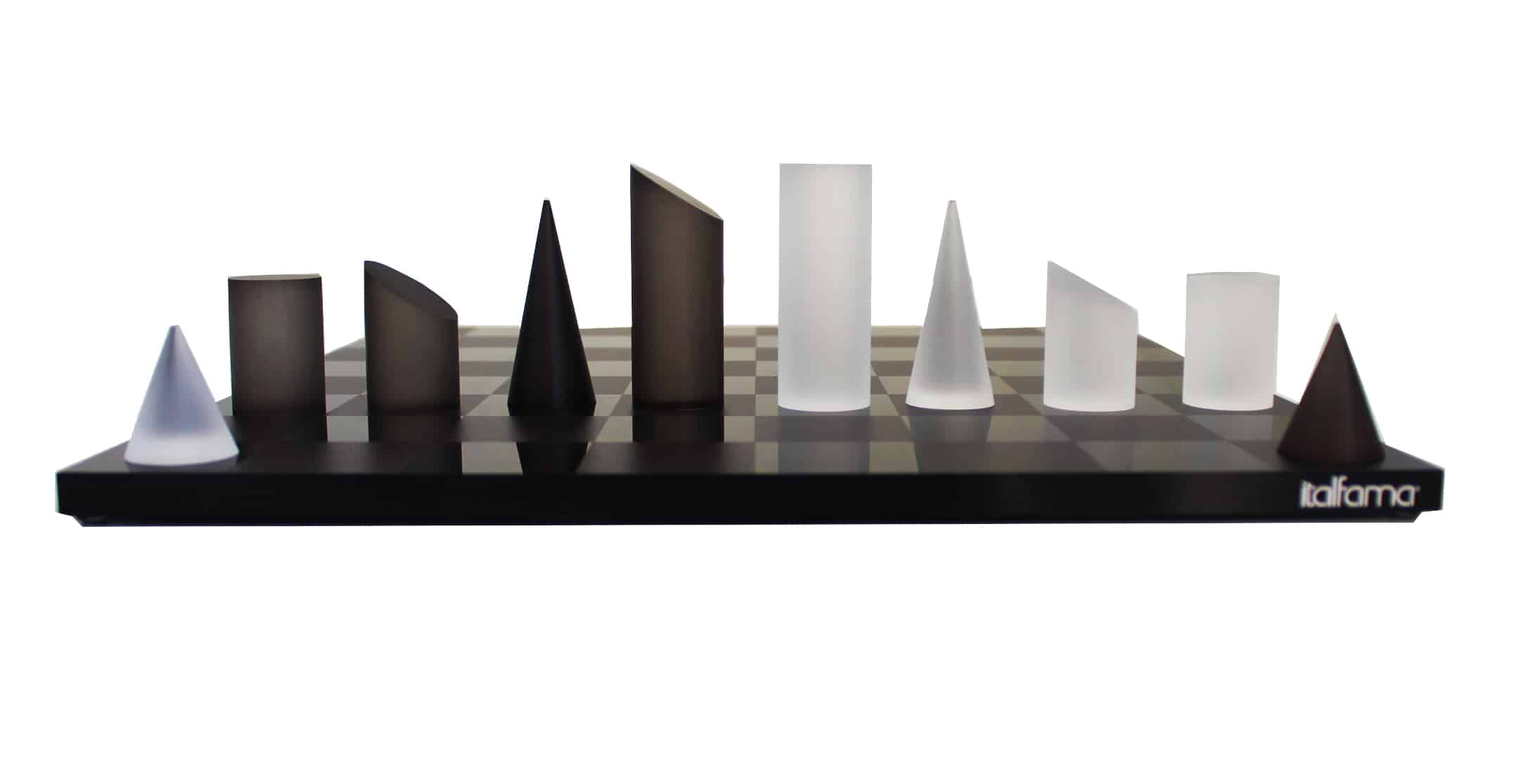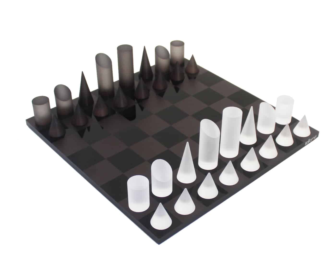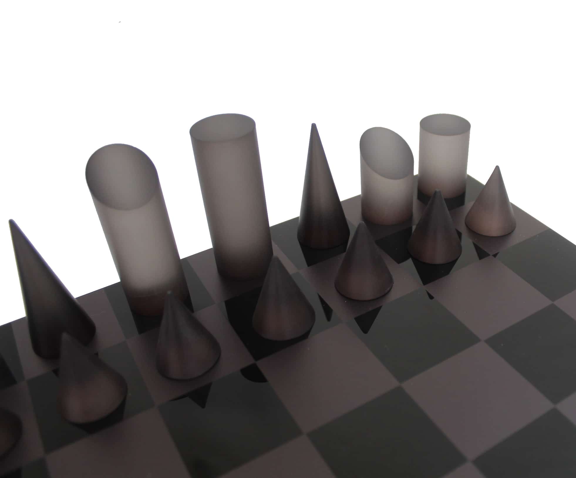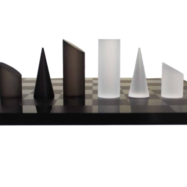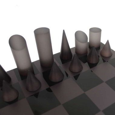 Un conjunto de juego de ajedrez de diseño original realizado completamente en plexiglás.