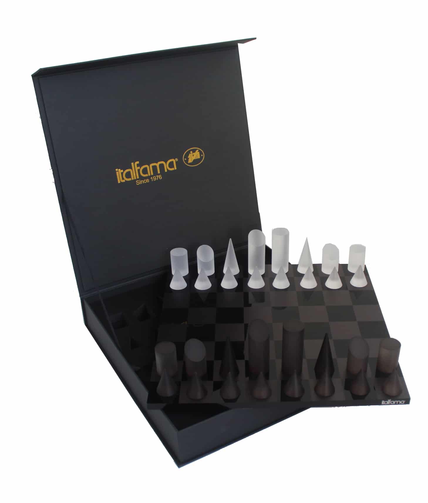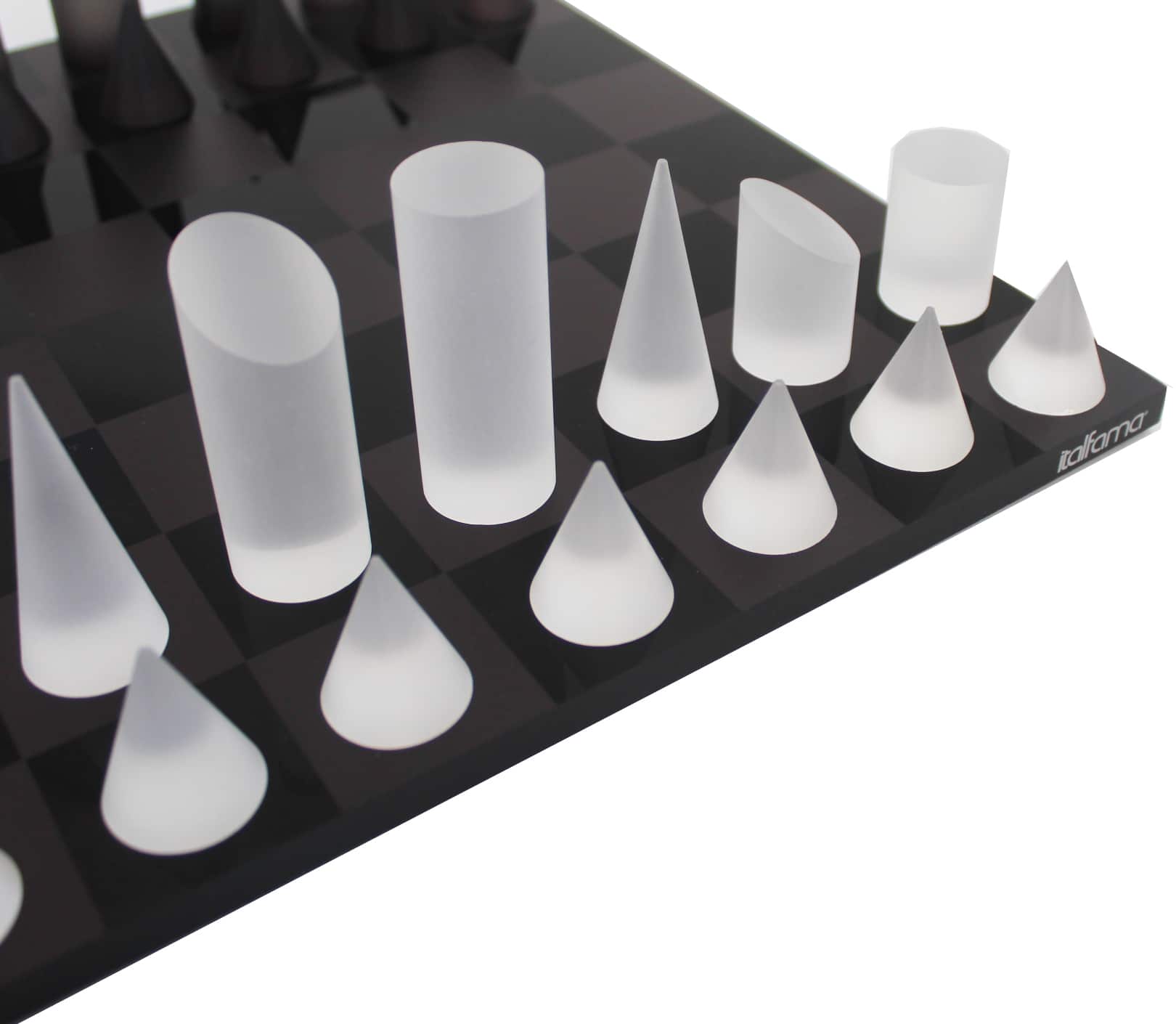 Juego de Ajedrez Cónico Moderno Gris y Blanco en Plexiglás con Caja de Almacenamiento