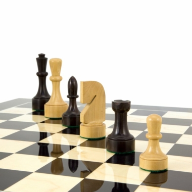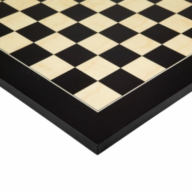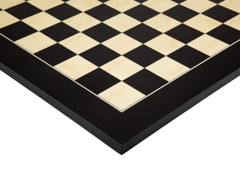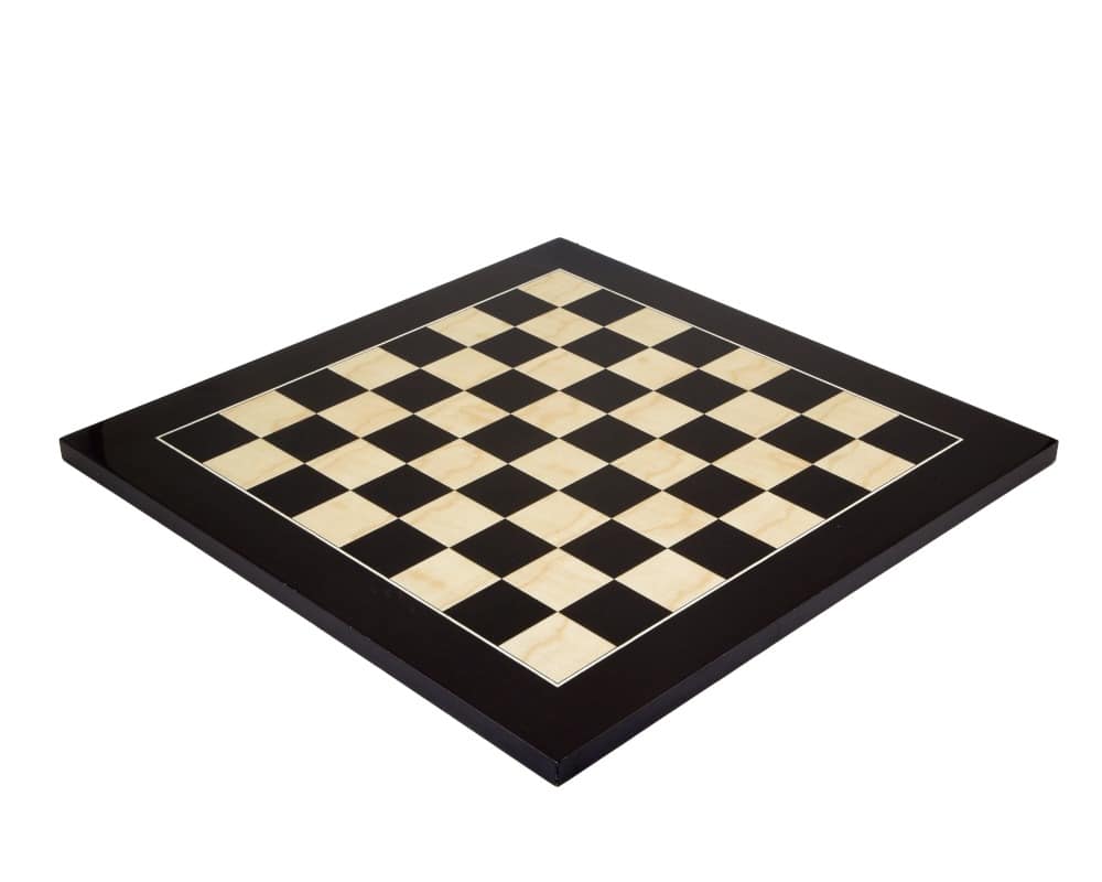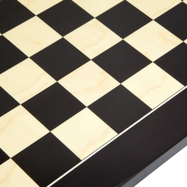 El tablero de 45 x 45 cm está fabricado en madera de anégre negro y arce.