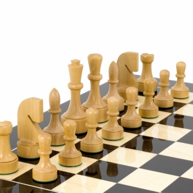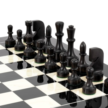 El conjunto Contemporáneo es un juego de ajedrez con una altura de rey de 9,5 cm en madera de bujes torneada y pulida a mano.