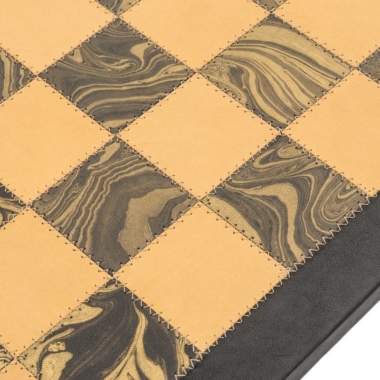 Vienen acompañadas de un hermoso tablero de ajedrez en cuero verdadero italiano de una dimensión de 53 x 53 cm.
