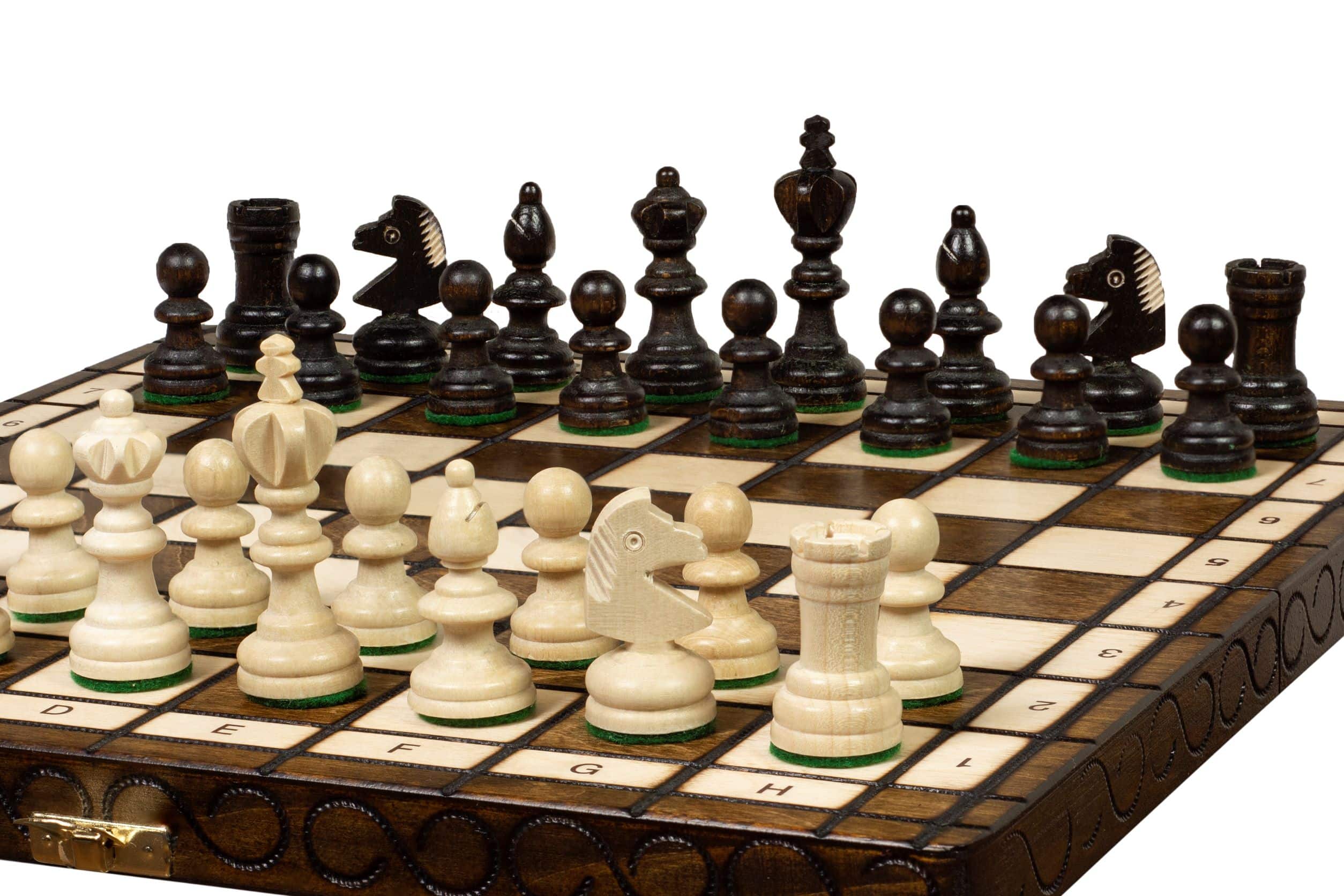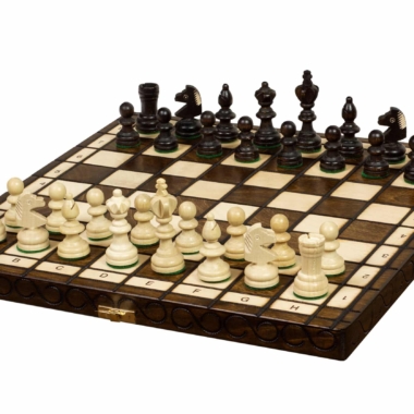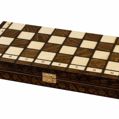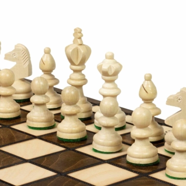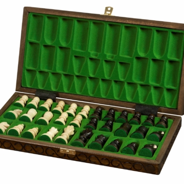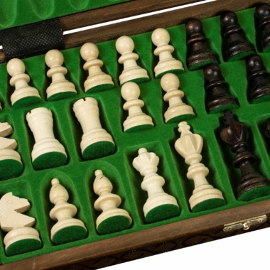 Vienen con un tablero de ajedrez plegable de madera de abedul y haya con dimensiones de 38 x 36 x 2,5 cm abierto (38 x 18 x 5 cm cerrado).