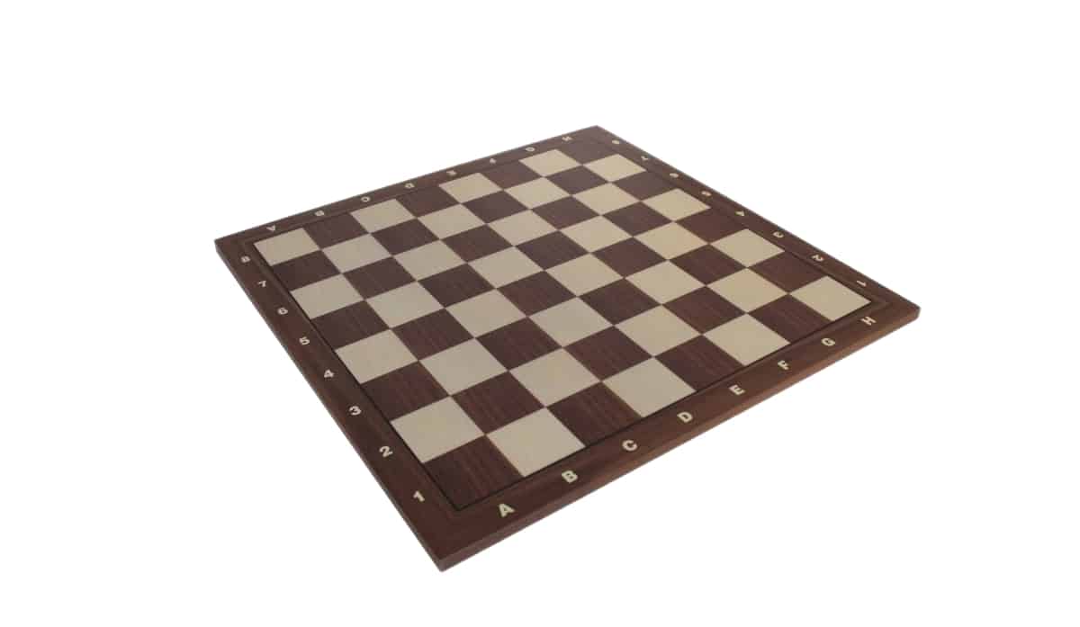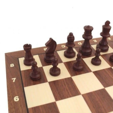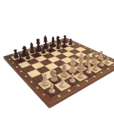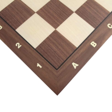 El tablero está realizado en madera de nogal y de arce con unas dimensiones de 42 x 42 cm e incluye marcadores alfanuméricos.