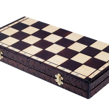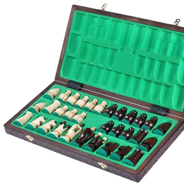 Están acompañadas de un tablero plegable de madera de abedul y haya con dimensiones de 44 x 44 x 3 cm abierto (44 x 22 x 6 cm cerrado). Incluye debajo del tablero de juego un compartimento de almacenamiento que permite guardar las piezas de ajedrez una vez que el tablero está plegado.