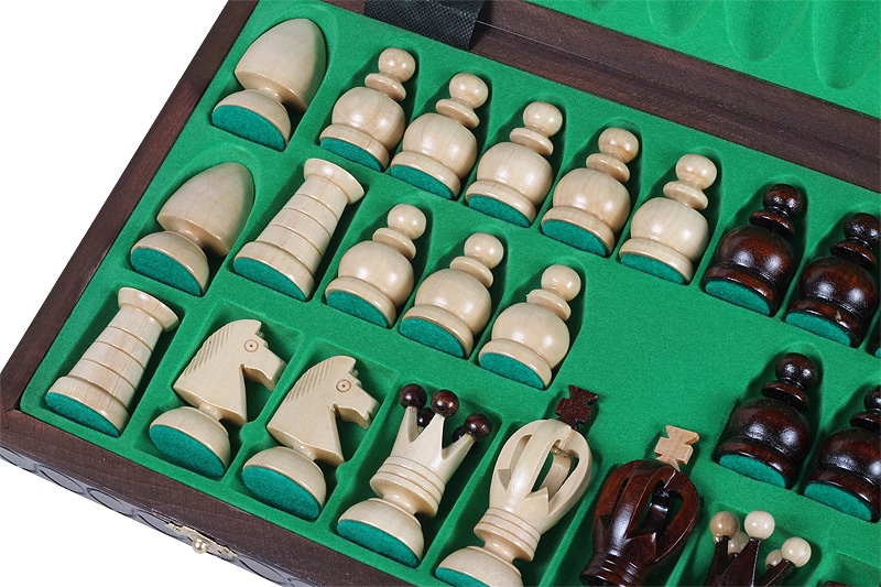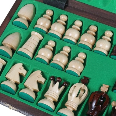 Las piezas de ajedrez son de madera de tilo y tienen una altura de rey de 7,5 cm.