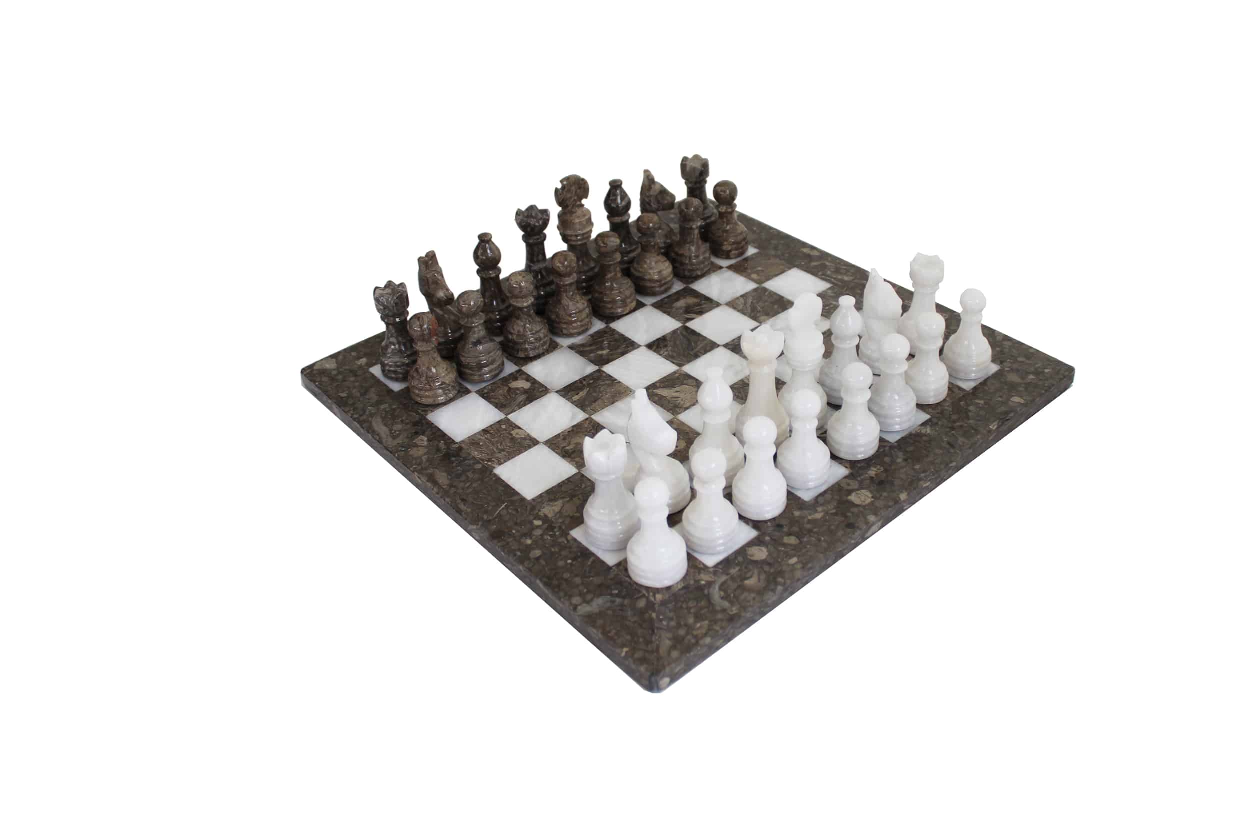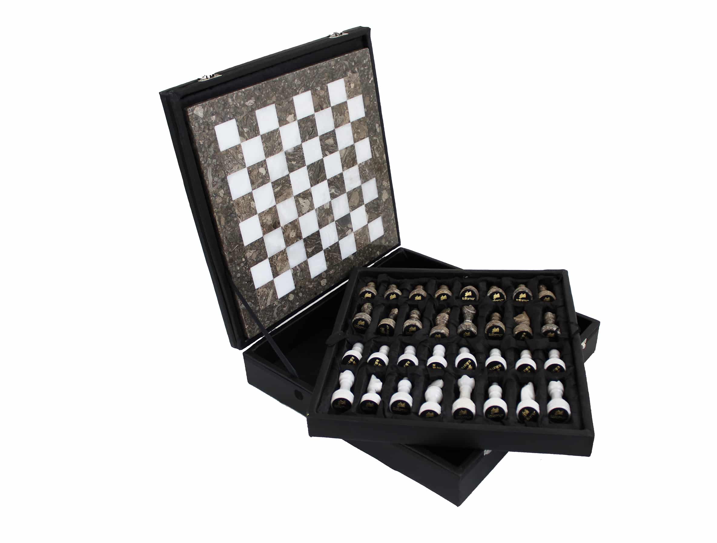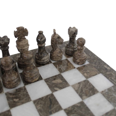 Juego de Ajedrez en Mármol Gris y Blanco 30x30cm