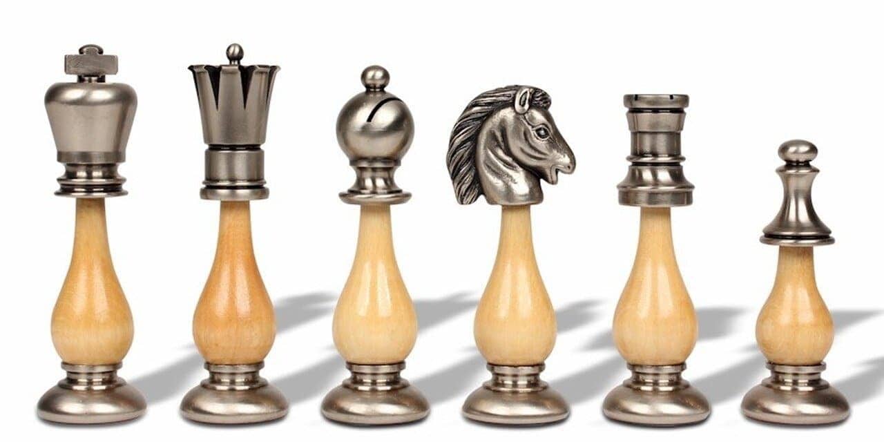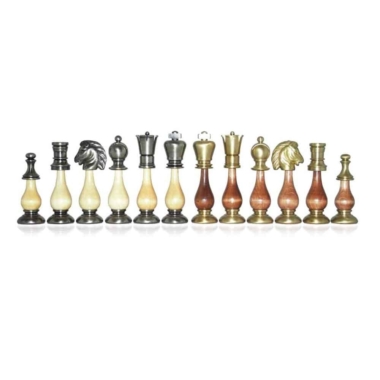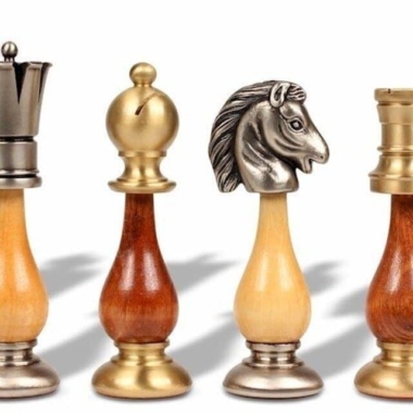 Las piezas de ajedrez artesanales están realizadas en latón macizo y en madera. Totalmente torneadas a mano, son bien ponderadas y tienen una altura de rey de 9,9 cm.