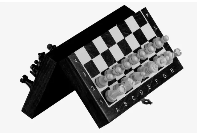 El tablero de ajedrez plegable en haya y abeto, cubierto con un tono oscuro con un estampado crema, combina elegancia y practicidad. Las piezas adoptan el estilo Staunton clásico, y la notación alfanumérica integrada en los bordes facilita el aprendizaje y el análisis de las partidas, haciendo de este juego perfecto tanto para principiantes como para jugadores experimentados.